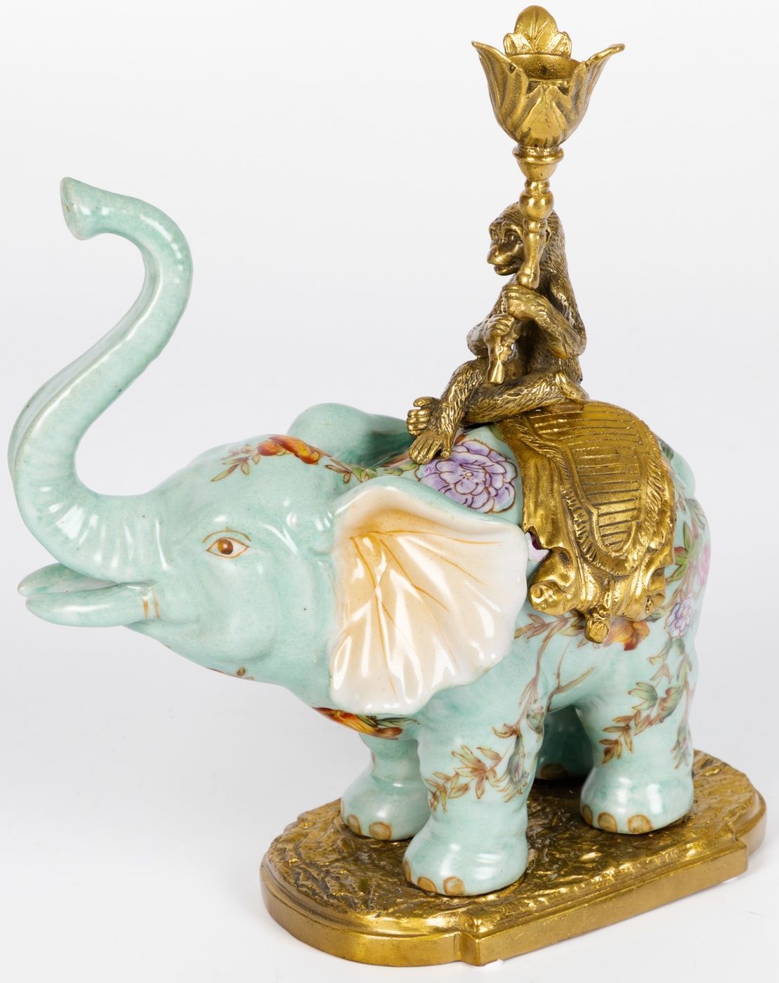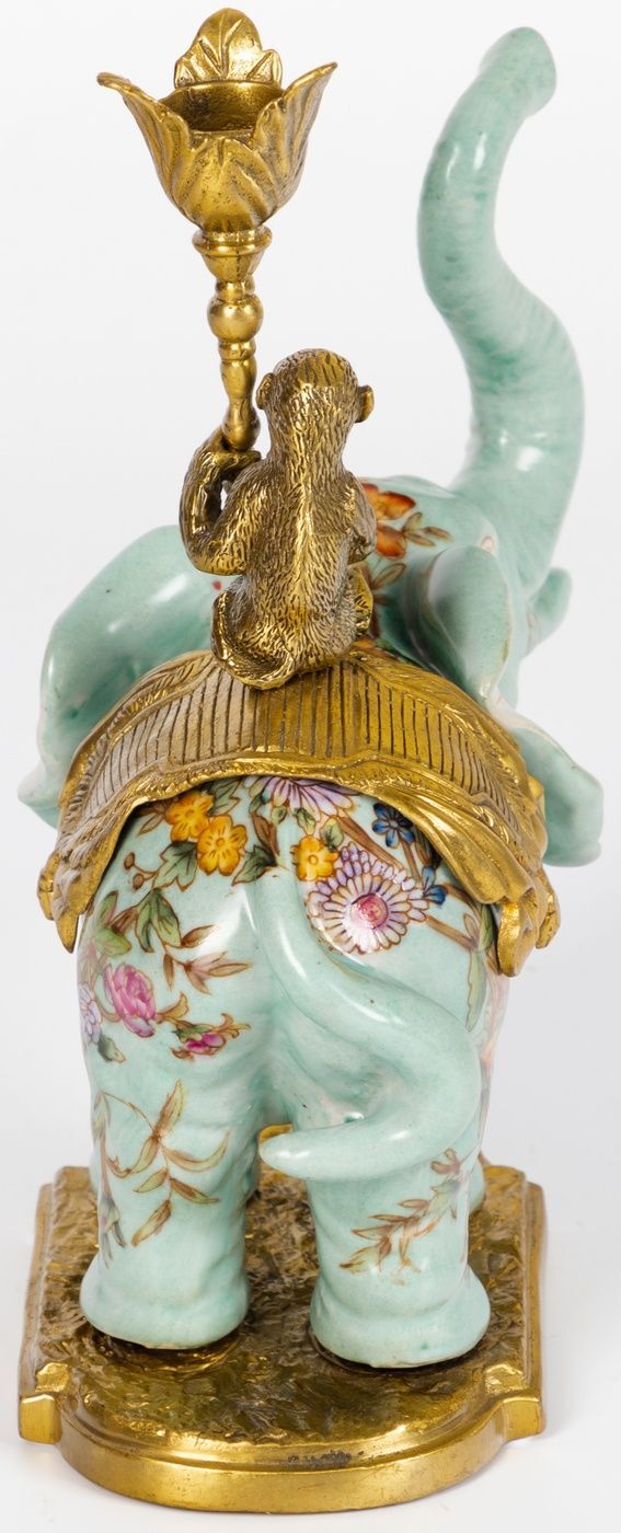 Подсвечник в виде слона, выполненный из фарфора с бронзовыми элементами. Уникальное изделие ручной работы. При производстве этих художественных изделий из фарфора с бронзой используются вековые традиции китайских мастеров. Видимые трещинки (кракелюры) делаются по уникальной технологии, что придает более благородный вид старинного изделия.