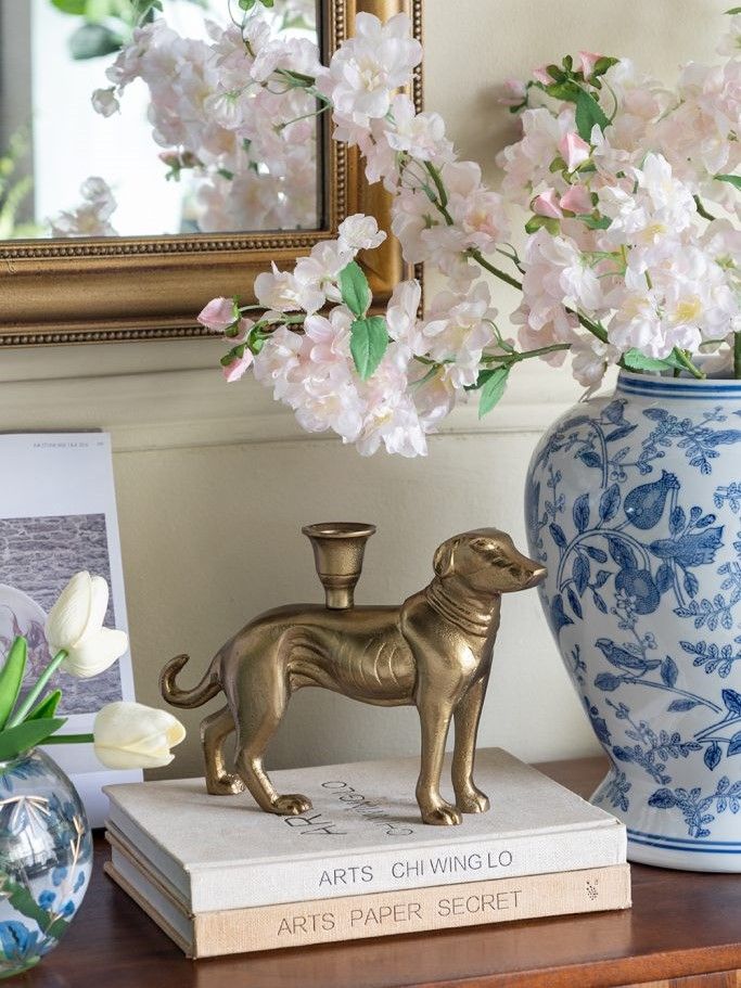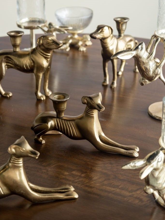Акцентный подсвечник отличается элегантным силуэтом собаки с детализированной отделкой золотистого цвета. Украсьте письменный стол, книжную или каминную полку, это изделие наполнит любую комнату теплым успокаивающим светом и дополнит ваш интерьер, легко вписываясь в любую атмосферу дома. Замечательный вариант подарка для любителей собак.