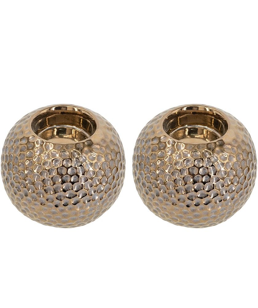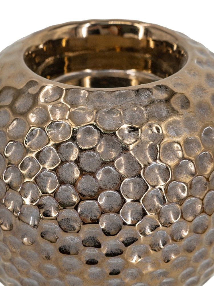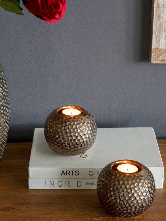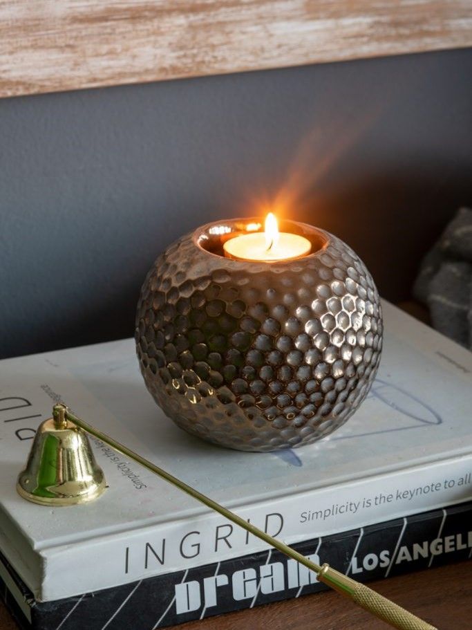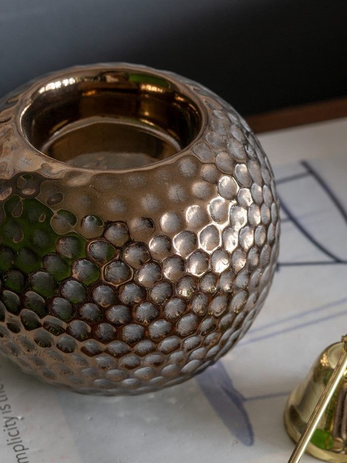 Керамические подсвечники в виде шаров, сочетающих в себе классические и современные мотивы, выполненные с бронзовой рельефной текстурой. Глянцевая расцветка и минималистичный дизайн позволяют этим изделиям дополнять переходный, современный, богемный и эклектичный стили, органично вписываясь в любой интерьер.