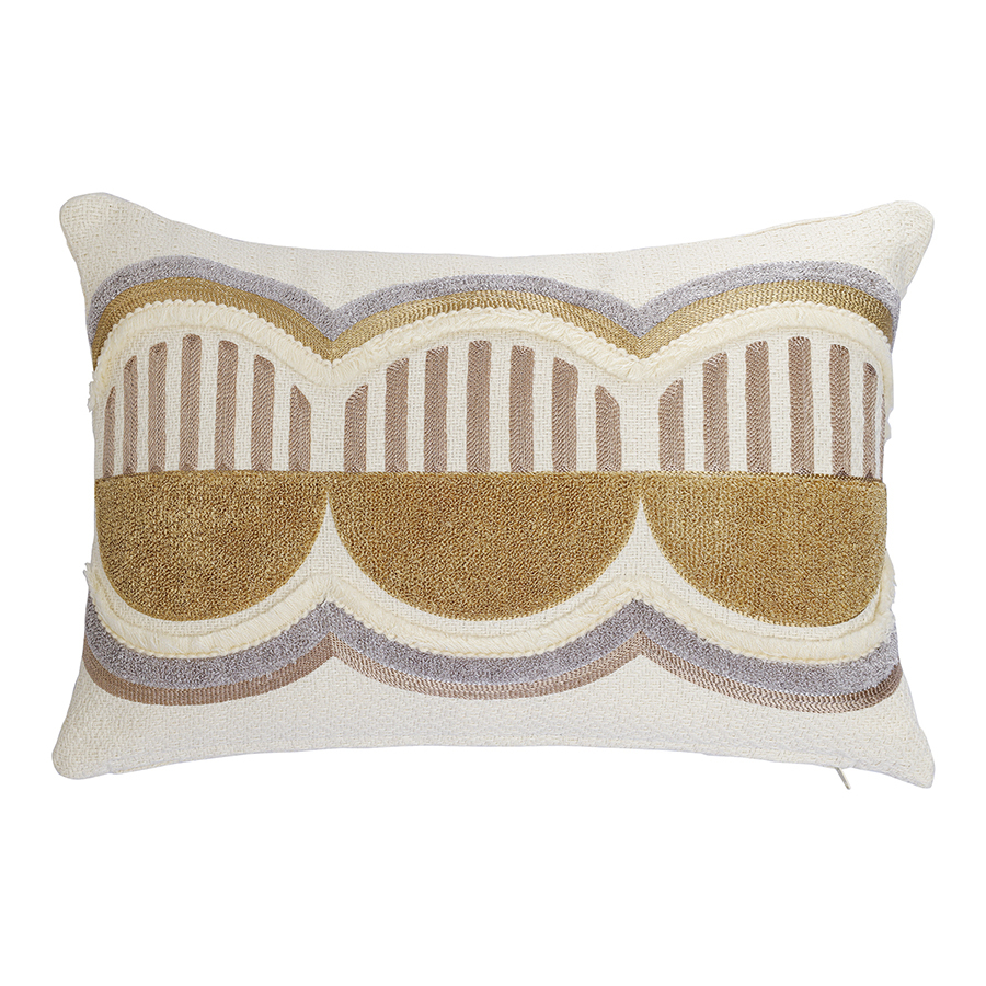 - Декоративный текстиль нейтрального бежевого цвета с геометрическим узором органично вписывается в различные интерьерные решения: сканди, эко, эклектика, фьюжн и другие.