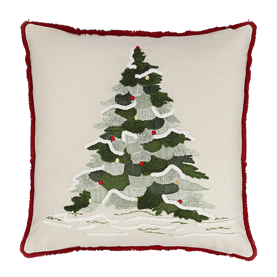 "Подушка декоративная Festive tree из коллекции New Year Essential добавит нотку волшебства в любое пространство, создав в нем атмосферу теплоты и уюта. Принт в виде очаровательной елочки в заснеженном лесу дарит приятные эмоции и оживляет дизайн. Подушка идеально подходит для гостиной, спальни или детской комнаты.