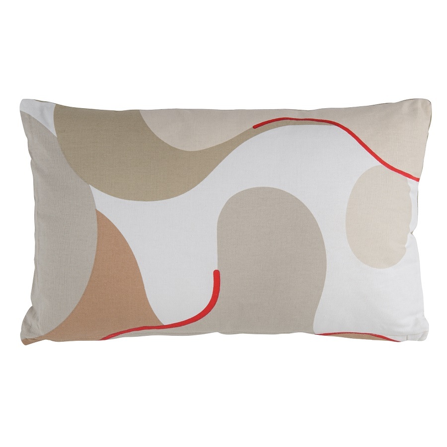 "Подушка декоративная из хлопка бежевого цвета с авторским принтом из коллекции Freak Fruit дополнит любой современный интерьер. Абстрактный принт не имеет повторяющегося раппорта и представляет собой единую законченную картину.