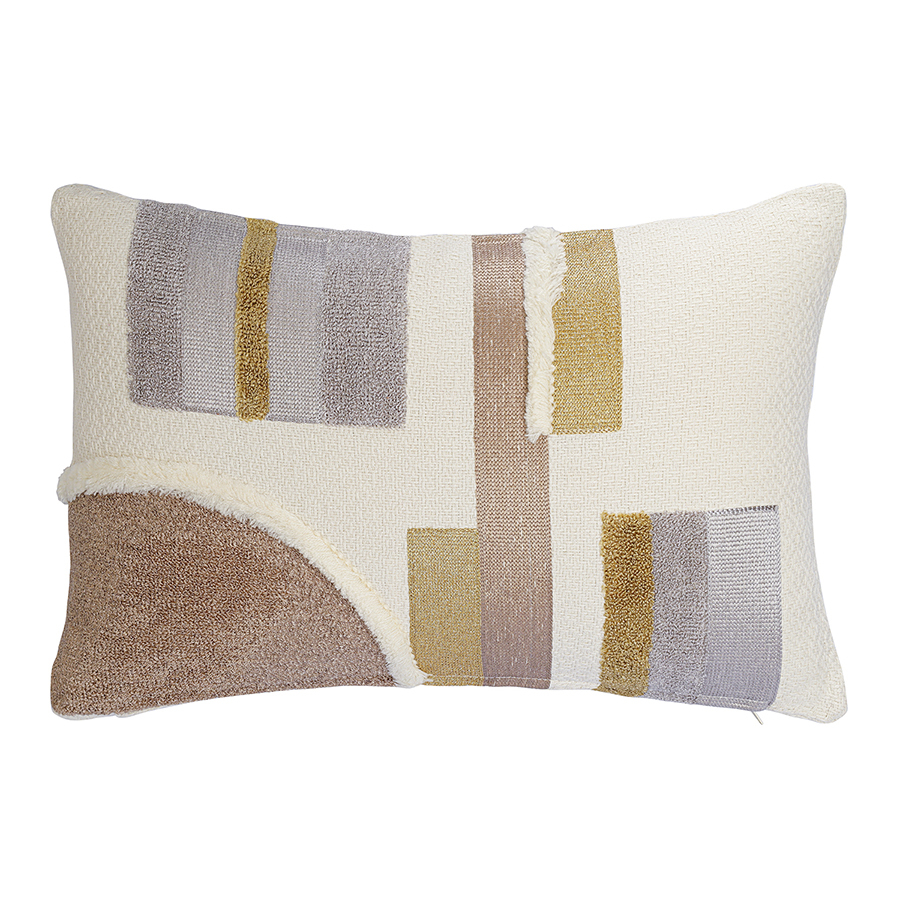 - Декоративный текстиль в нейтральных тонах с геометрическим узором органично вписывается в различные интерьерные решения: сканди, эко, эклектика, фьюжн и другие.