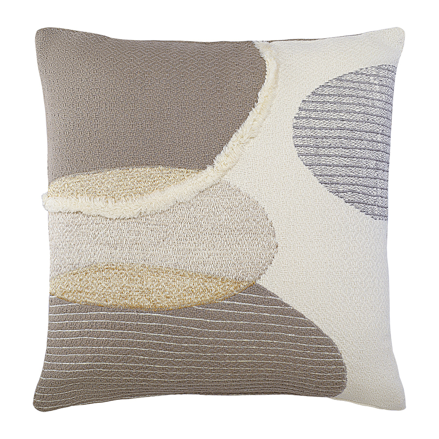 - Декоративный текстиль в нейтральных тонах с геометрическим узором органично вписывается в различные интерьерные решения: сканди, эко, эклектика, фьюжн и другие.