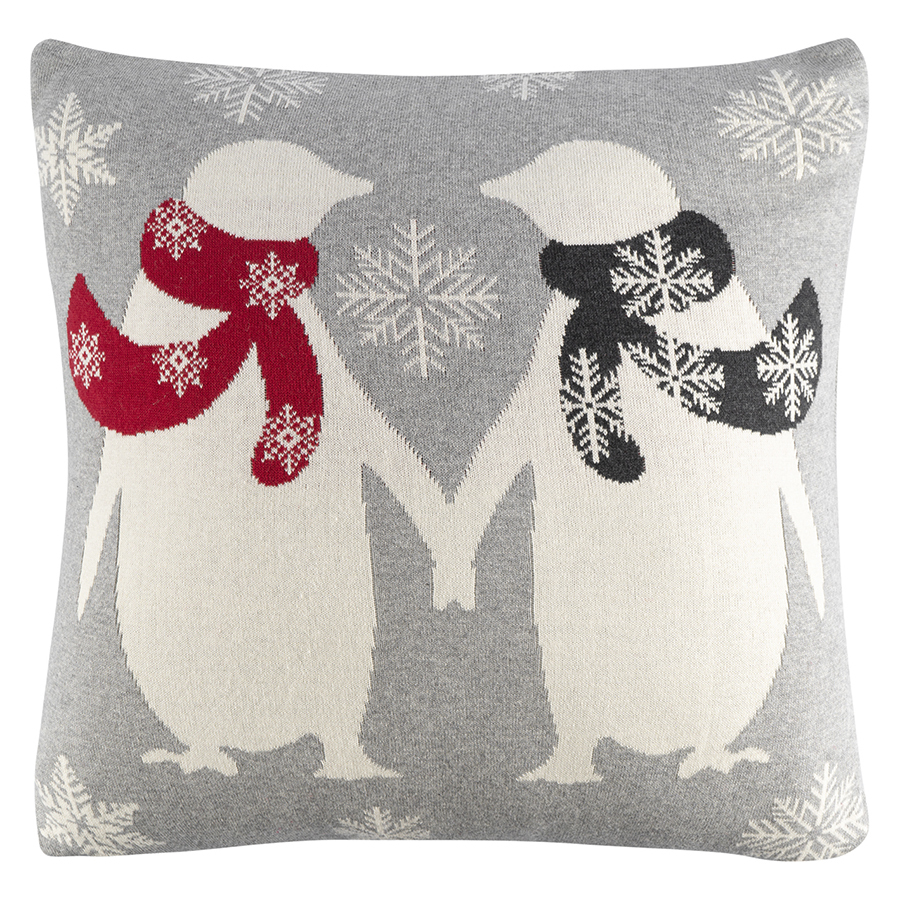 "Подушка вязаная с новогодним рисунком Festive penguins из коллекции New Year Essential поможет в создании праздничного настроения и уютной атмосферы.