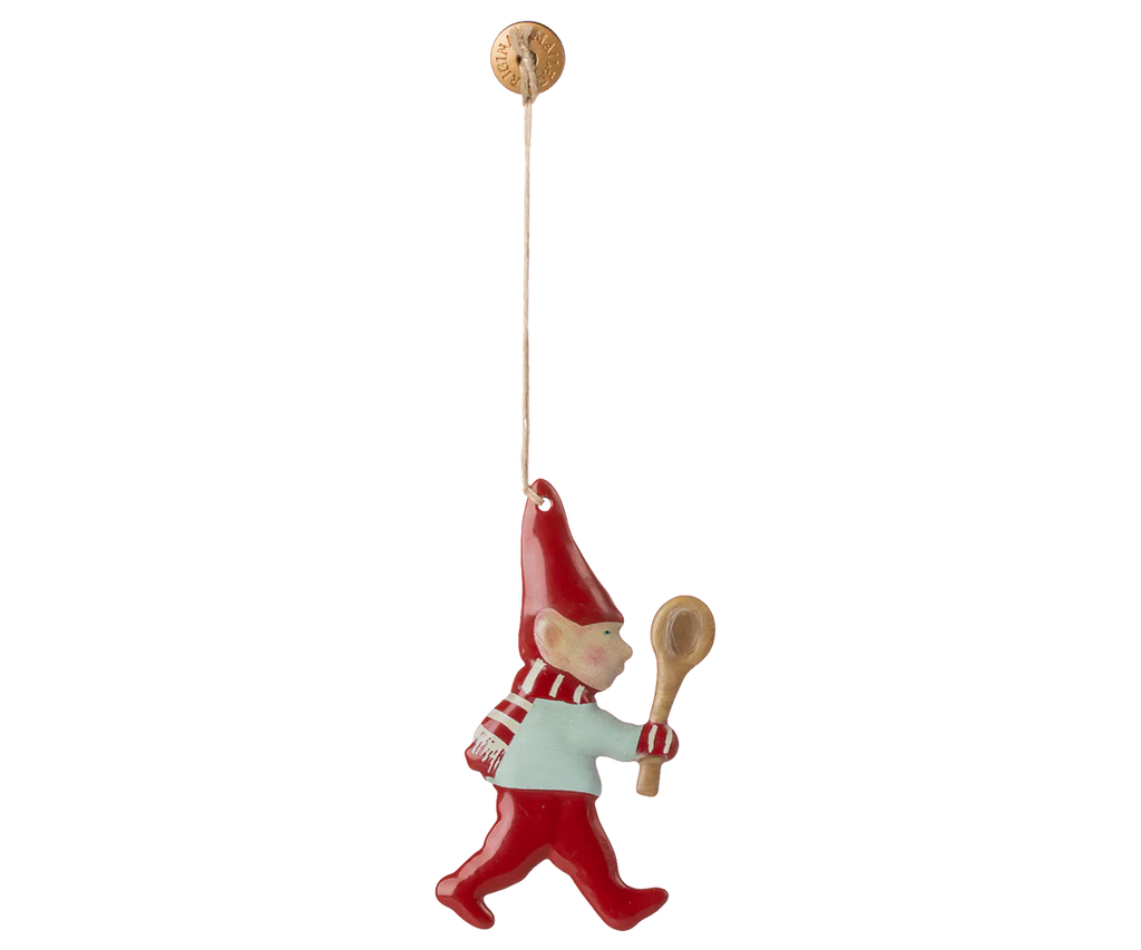 Датский бренд Maileg известен своими красивыми новогодними, рождественскими украшениями. Подвесное украшение Гном Пикси – выполнено из металла. Оно украсит новогоднюю ель, или окно, или веточку дерева. Миксуйте украшения Maileg для создания своей собственной коллекции.