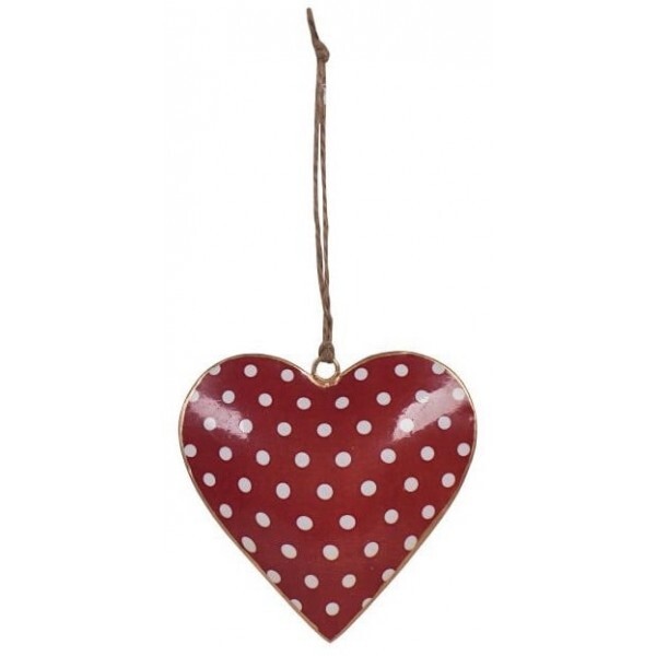 Подвесное украшение Heart red with dots 10 см