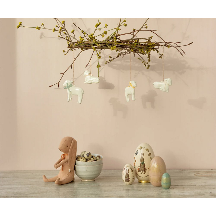 Датский бренд Maileg известен своими красивыми подвесными украшениями. Пасхальное подвесное украшение «Ягненок» расписано вручную, с учетом каждой маленькой детали. Миксуйте украшения Maileg для создания своей собственной коллекции.