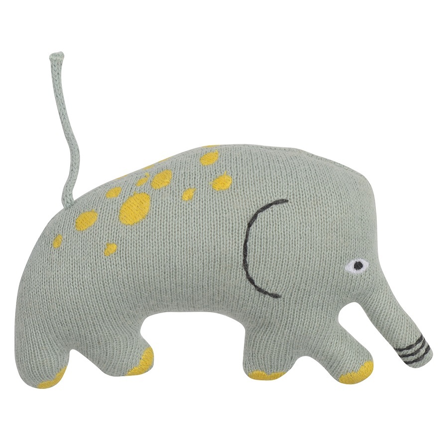 "Погремушка из хлопка Слоник Lou из коллекции Tiny world безопасна для детей и подойдет для совместных игр с родителями. Она приятна на ощупь и выполнена в сдержанных оттенках. Благодаря выступающим деталям, ребенку удобно захватывать и удерживать погремушку.