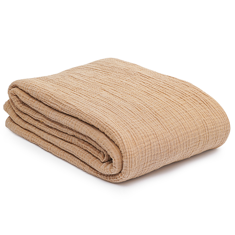 "Покрывало двухсторонее из многослойного муслина цвета охры из коллекции Essential сделает интерьер спальни уютным и подарит чувство комфорта при использовании. Легкий, дышащий материал на основе экологичного хлопкового волокна приятный на ощупь, хорошо впитывает влагу, не электризуется и не вызывает аллергию. За счет специального переплетения нитей в каждом из четырех слоев ткань имеет интересную фактуру, обладает высокой плотностью, устойчивостью к износу, не скатывается и хорошо держит форму. Элегантная простота муслинового покрывала позволяет вписать его в различные стилевые решения интерьера: сканди, кантри, прованс, эклектика, бохо, эко, минимализм и другие.