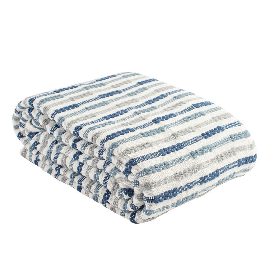 "Хлопковое покрывало в полоску с объемным тканым рисунком из коллекции Ethnic станет интересным элементом декора в интерьере, оформленном в скандинавском стиле, этническом или прованс.