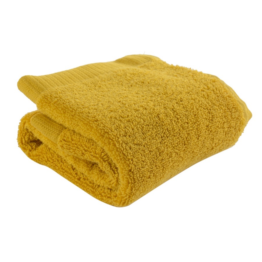 "Полотенце для лица горчичного цвета из коллекции Essential – отличный вариант для тех, кто любит качественный однотонный текстиль. Мягкая, при этом прочная пряжа изготавливается из лучших сортов длинноволокнистого хлопка методом тщательного прочесывания, что значительно улучшает ее качественные характеристики материала. Изделие быстро впитывает влагу, оставляя приятное ощущение свежести и чистоты. Можно дополнить банным полотенцем такого же оттенка.