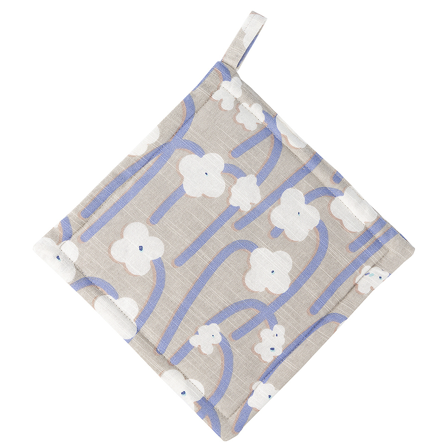 "Прихватка из хлопка серого цвета с принтом Полярный цветок из коллекции Scandinavian touch – практичный и полезный кухонный аксессуар. Нежный цветочный принт разработан одним из ведущих финских дизайнерских агентств. Изделие хорошо сочетается с другим кухонным текстилем из этой же коллекции, оно станет ярким акцентом в интерьере кухни и гармонично впишется в любой современный стиль. Прихватка не нагревается и хорошо защищает от контакта с горячими поверхностями. Есть удобная петелька для подвешивания.