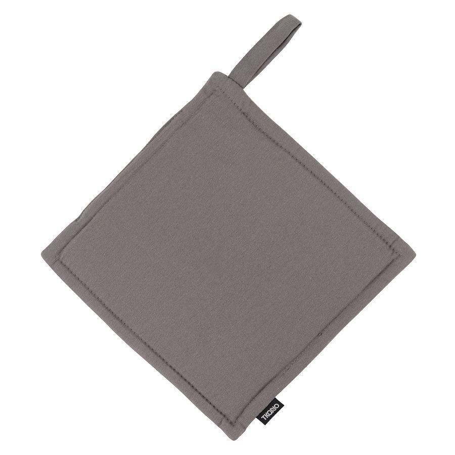 "Прихватка из хлопка серого цвета из коллекции Essential – универсальный кухонный аксессуар. Однотонное изделие органично впишется в любой современный интерьер. Не нагревается даже при длительном контакте с горячими поверхностями. Внешняя часть выполнена из 100%, гипоаллергенного хлопка. Наполнитель: полиэстер. Есть удобная петелька для подвешивания.