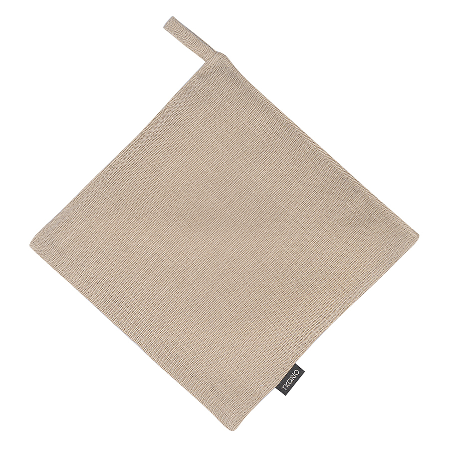 Прихватки представлены в четырех цветах: синем, сером, горчичном и бежевом. Есть удобная петелька для подвешивания.