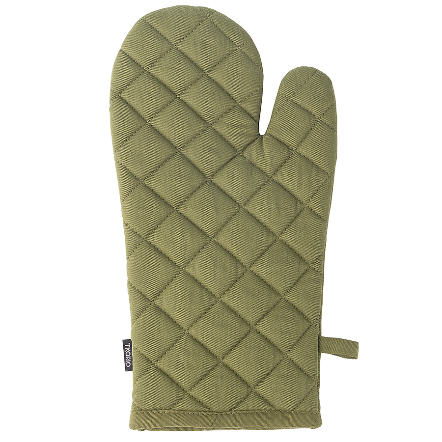 "Прихватка-варежка из хлопка оливкового цвета из коллекции Essential – универсальный кухонный аксессуар. Изделие не нагревается и защищает руку при контакте с горячими поверхностями. Внешняя и внутренняя части выполнены из 100%, гипоаллергенного хлопка. Наполнитель: полиэстер. Есть удобная петелька для подвешивания.