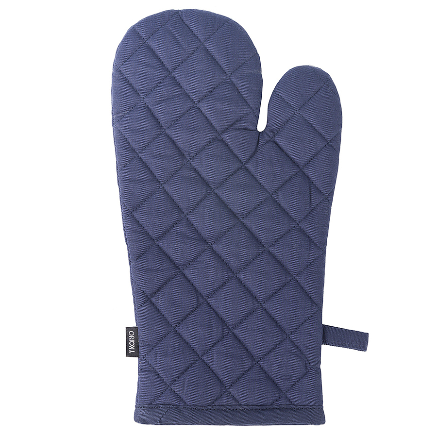 "Прихватка-варежка из хлопка темно-синего цвета из коллекции Essential – универсальный кухонный аксессуар. Изделие не нагревается и защищает руку при контакте с горячими поверхностями. Внешняя и внутренняя части выполнены из 100%, гипоаллергенного хлопка. Наполнитель: полиэстер. Есть удобная петелька для подвешивания.