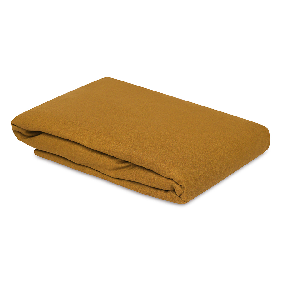 "Простыня изо льна и хлопка цвета карри из коллекции Essential – стильное постельное белье высочайшего качества, которое подарит ощущение комфорта во время сна и привнесет в интерьер спальни природную элегантность.