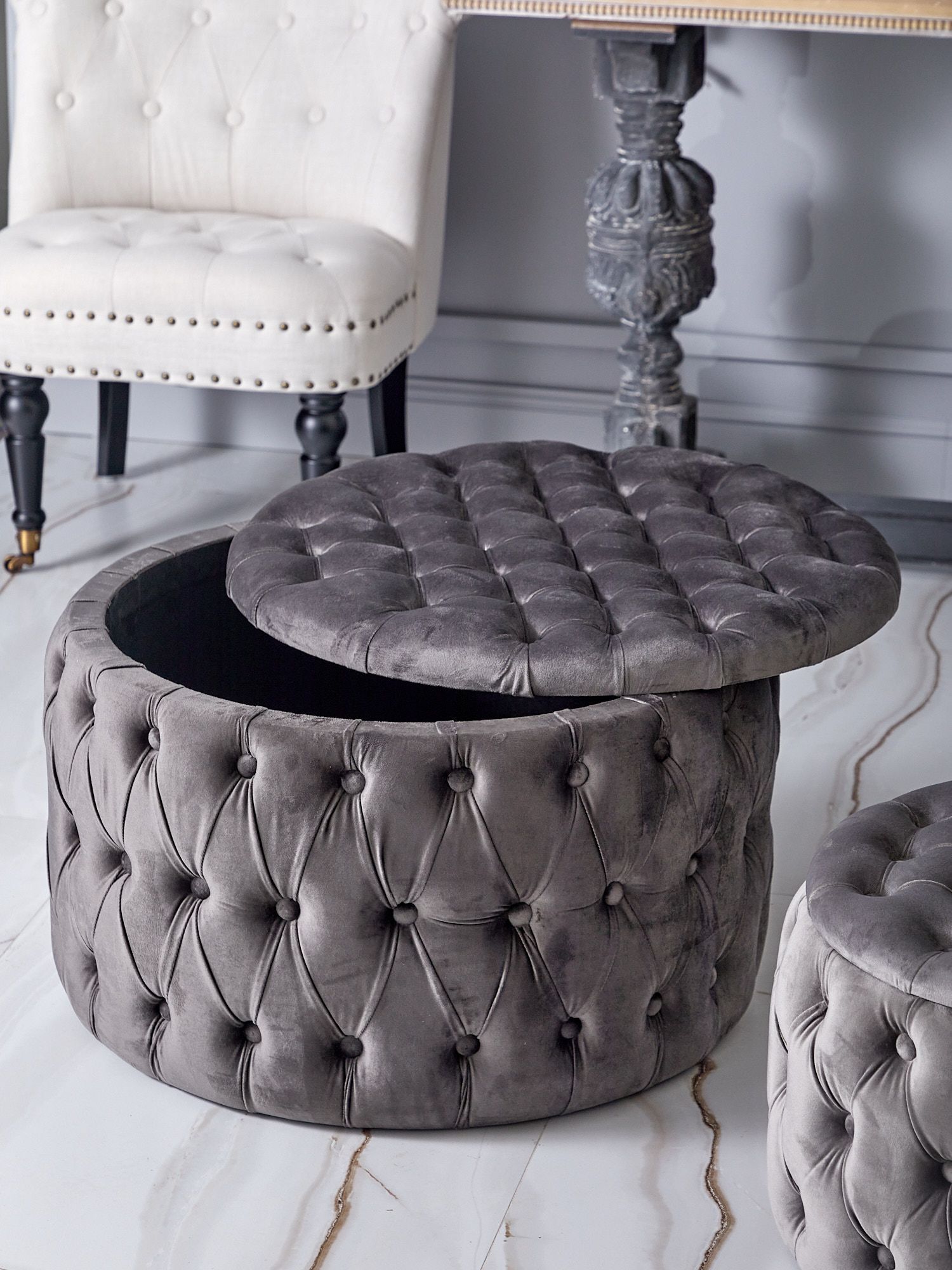Удобный пуф больших размеров с велюровой обивкой и вместительным отделением для вещей, идеально впишется в любое помещение, а благодаря своему классическому дизайну, станет уникальным дополнением в ваш интерьер.
