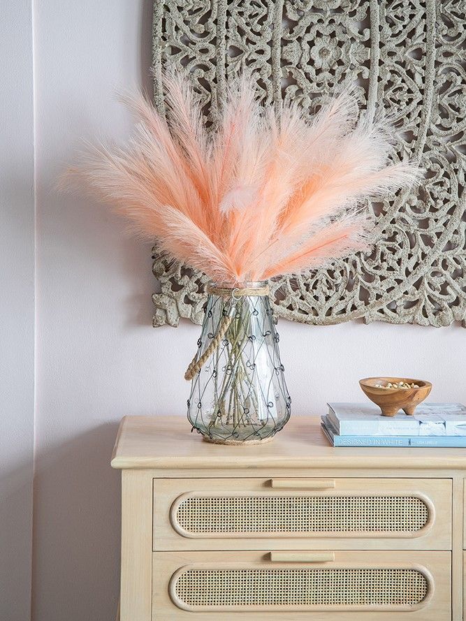 Добавьте природного стиля в любую комнату с помощью красивой композиции из кортадерии. Эти растения имеют внушительный размер и идеально подходят для того, чтобы поставить их в вашу любимую вазу в качестве природного элемента, создавая атмосферу легкости и невесомости.