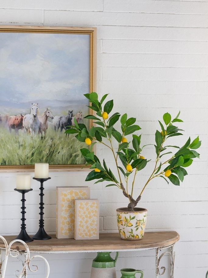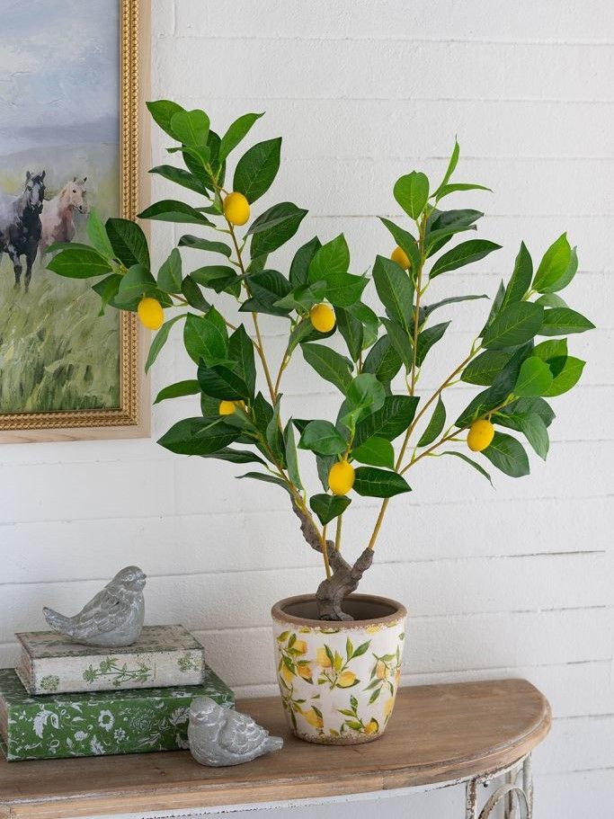 Экзотическое лимонное дерево привлекает дизайнеров из-за его скульптурных качеств и универсальности, подходящих практически для любого жилого помещения и стиля. Используйте этот декор, чтобы разнообразить пространство комнаты, привлечь взгляд ваших гостей или просто чтобы заполнить пустующий угол. Реалистичные текстурированные детали позволяют этому дереву гармонично сочетаться с интерьерами в стиле прованс, кантри, бохо и традиционными стилями, благодаря чему изделие может стать центральным элементом любой композиции.