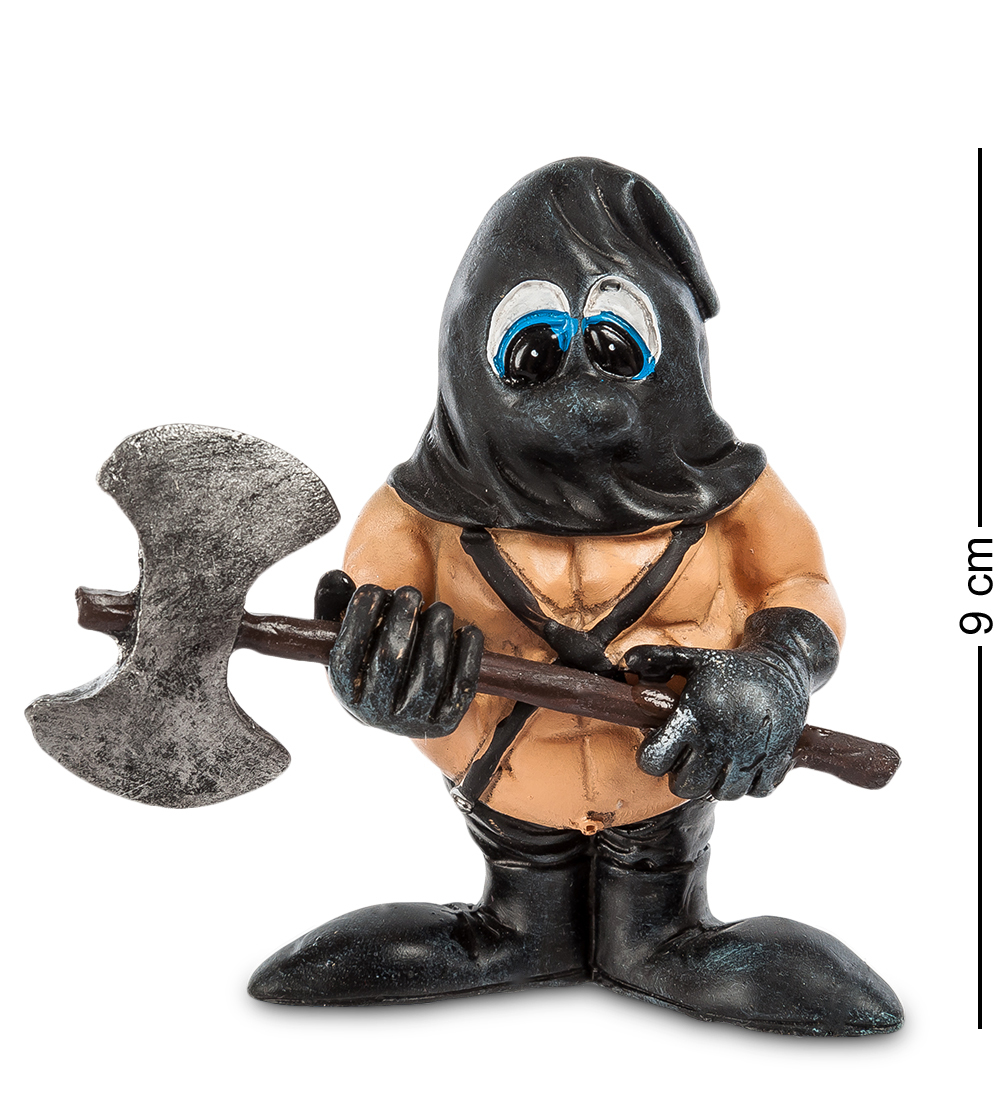Шуточная статуэтка палача. Когда мужчина держит в руках обоюдоострый топор, совсем не обязательно считать, что это – воин, готовящийся в битве. У него просто такая профессия – нести смерть в мирное время, исполняя приговоры. Кому-то надо быть и палачом. На голове – традиционный капюшон, закрывающий лицо: для глаз оставлены прорези.