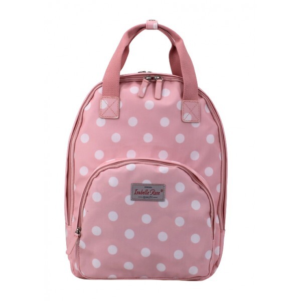 Интересное и нежное цветовое решение рюкзака с ярко выраженной винтажной стилистикой, в виде крупного белого гороха на пастельном розовом фоне, делает его главным акцентом в вашем образе, навевая настроение ретро-очарования скандинавских мотивов.