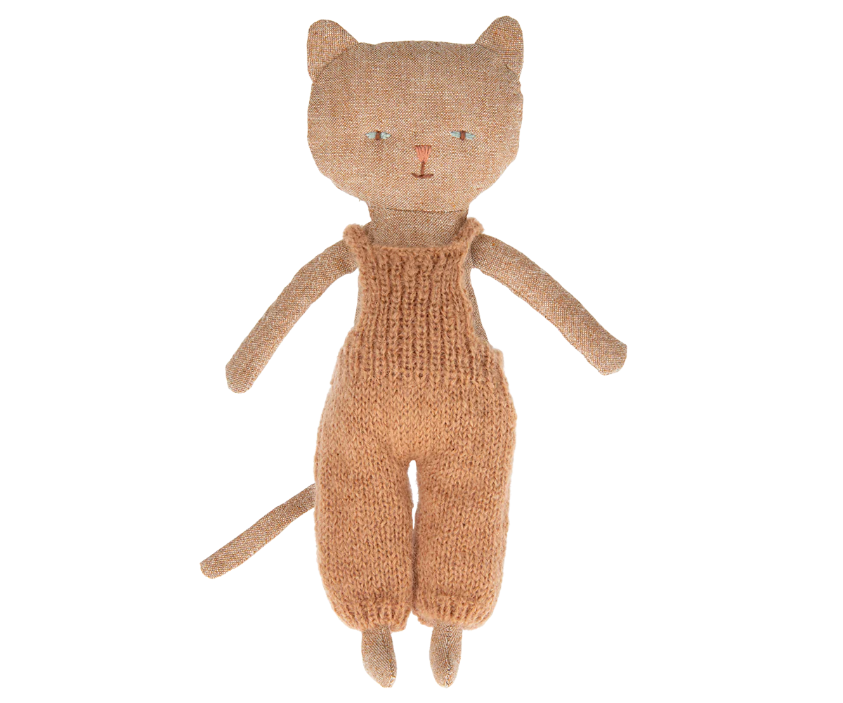 Симпатичная кошечка Maileg сделана из хлопка и льна и одета в милый вязаный бледно-голубой комбинезон. Мордочка кошечки аккуратно вышита. Изделия Maileg прекрасно сочетаются, образуя целые коллекции. Это вневременные игрушки доставят радость не только вашему ребенку, но и внуку. Отличный подарок для людей, ценящих красоту и высокое качество вещей. Размер игрушки 23 см. Рекомендации: для детей от трех лет. Уход: ручная стирка. Материал: лен с наполнителем шарики из 100% полиэстера (переработанный пластик). Игрушка поставляется в пакете.