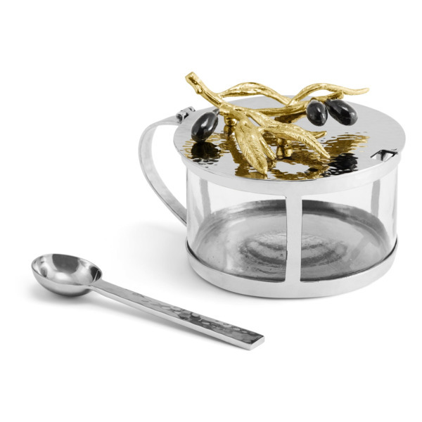 Сахарница с ложкой Michael Aram Оливковая ветвь 200 мл, сталь нержавеющая, стекло