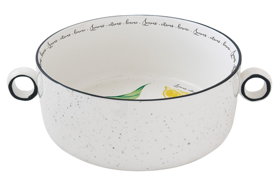 Салатник, 20 см, 1,8 л, с ручками, фарфор P, белый, Лимоны, Amalfi