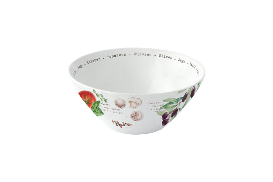 Салатник, 16х8 см, 420 мл, фарфор P, белый, Помидоры и Оливки, Home and Kitchen
