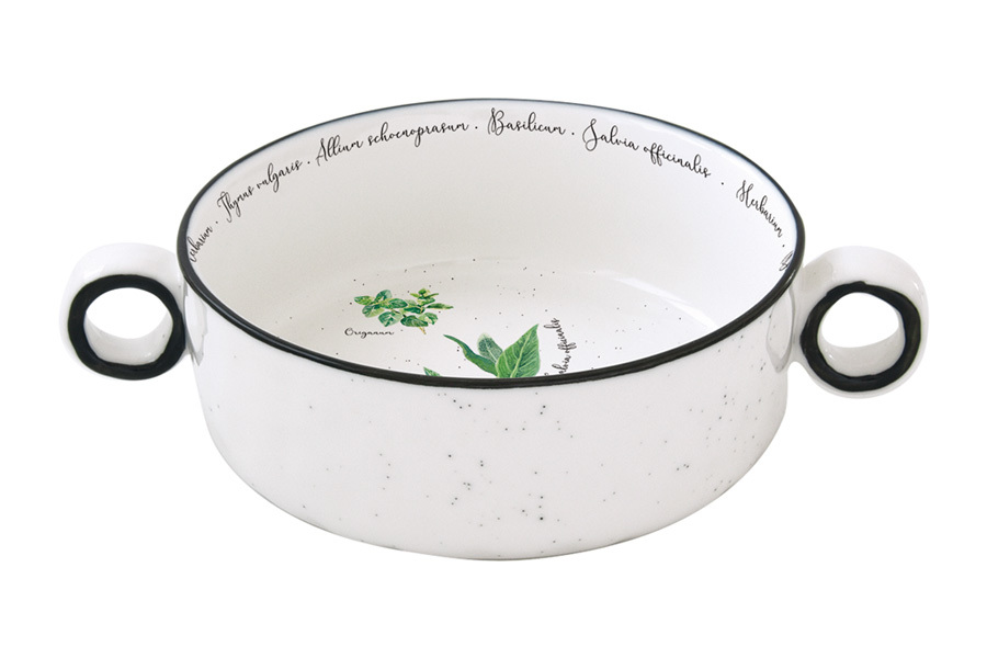 Салатник, 16 см, 800 мл, с ручками, фарфор P, белый в крапинку, Растения, Herbarium EL