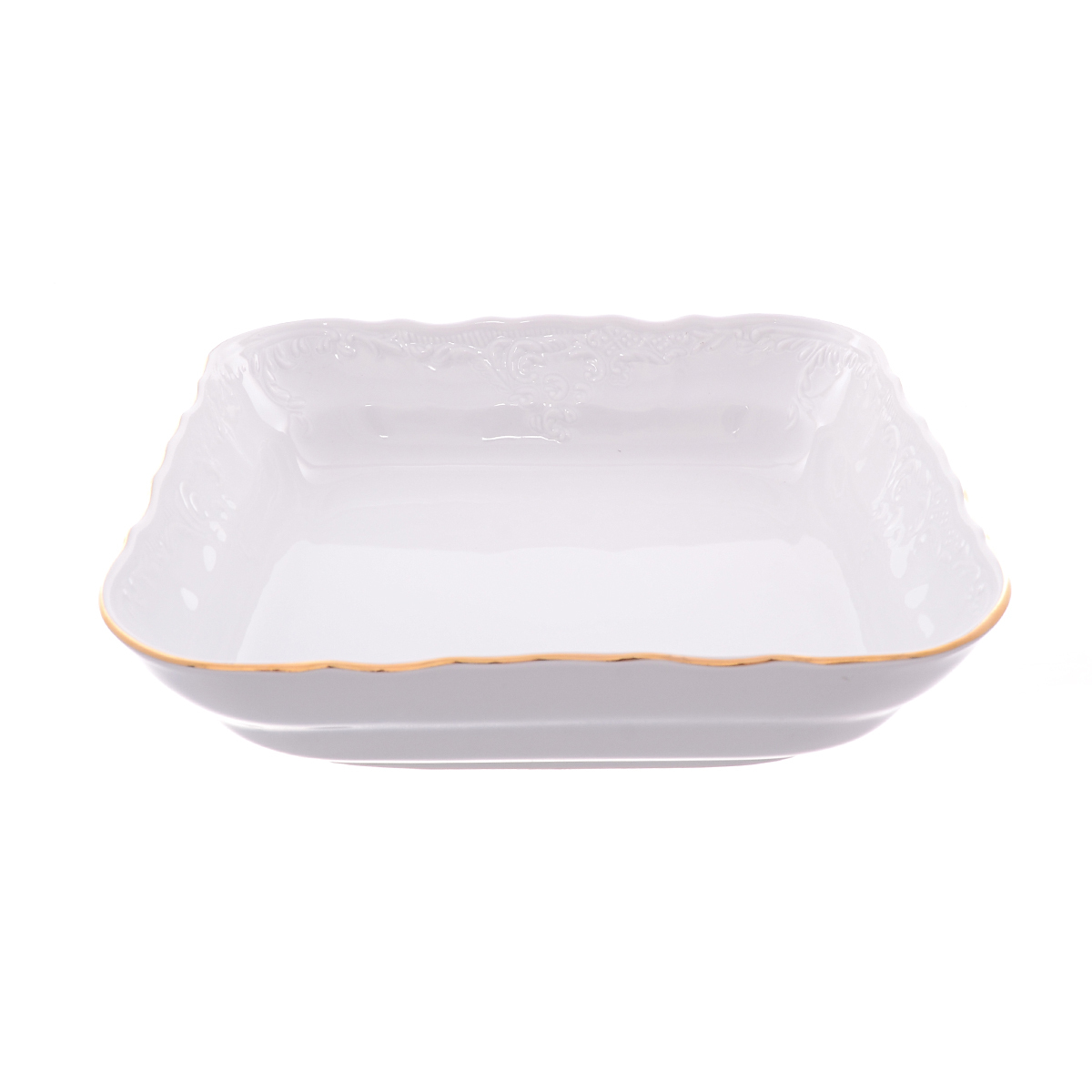 Салатник квадратный 25 см Бернадотт Белый узор Нужен вместительный салатник? Вот он! Фарфоровая посуда от Бернадотт – это всегда 100% успеха хозяйки при сервировке праздничного стола.