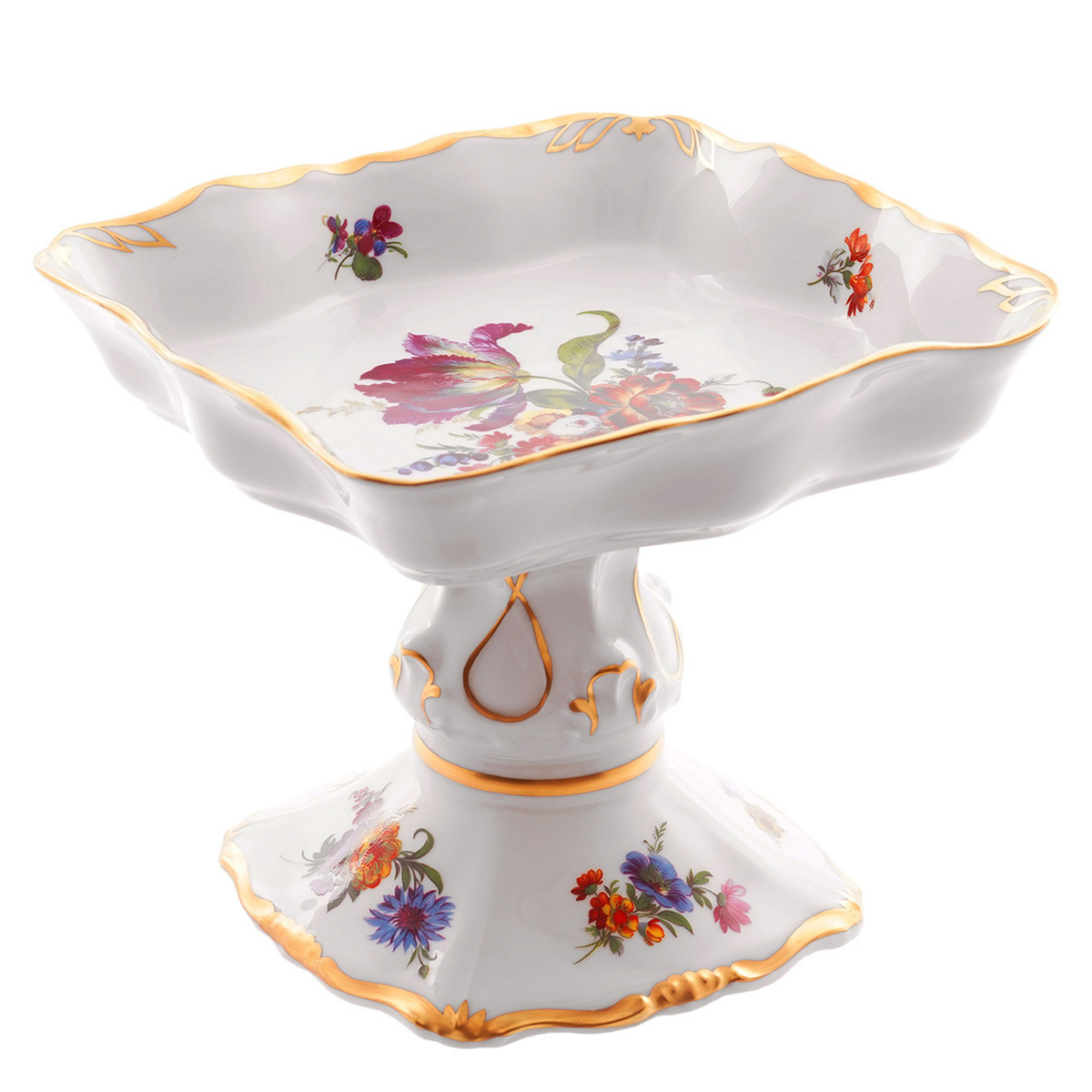 Салатник квадратный на ножке Queen's Crown Мейсенский букет 19см