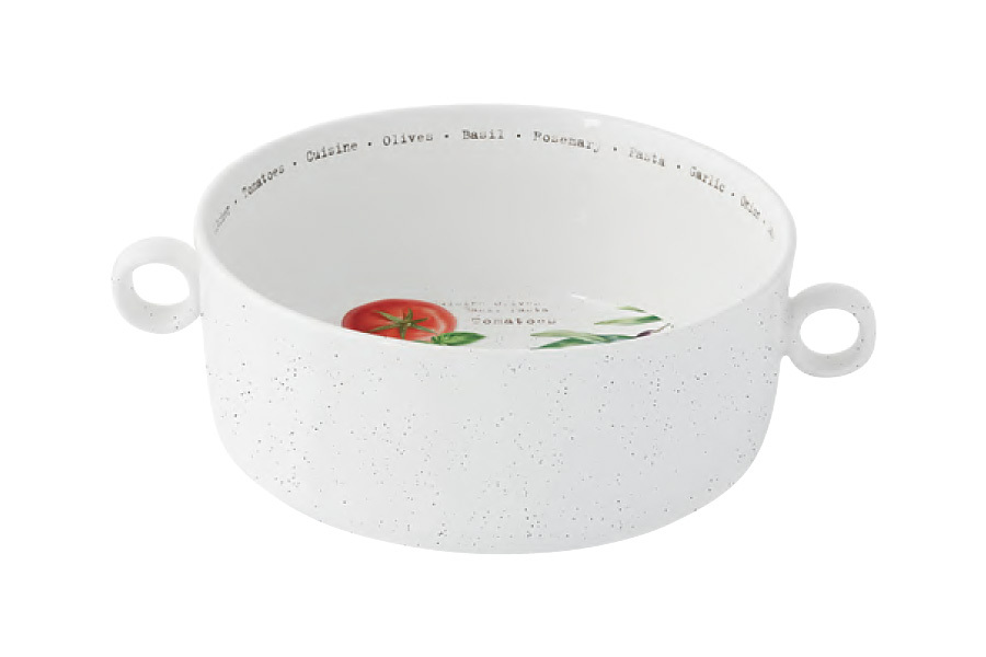 Салатник, 20 см, 1,8 л, с ручками, фарфор P, белый, Помидоры и Оливки, Home and Kitchen