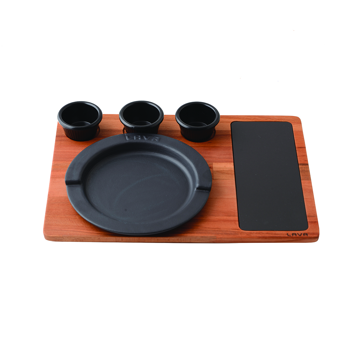 Сервировочное блюдо круглое на деревянном подносе и съемная литая чугунная панель(ø)22cm. (не включает соусники)