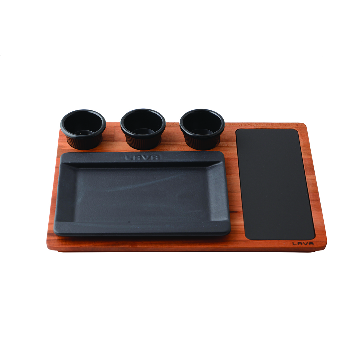 Сервировочное блюдо прямоугольное на деревянном подносе и съемная литая чугунная панель 18x25cm. (не включает соусники)
