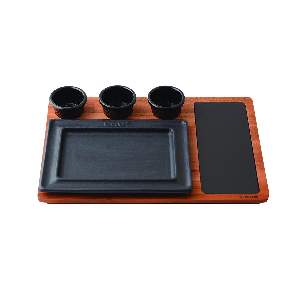 Сервировочное блюдо прямоугольное на деревянном подносе и съемная литая чугунная панель 19x26cm. (не включает соусники)