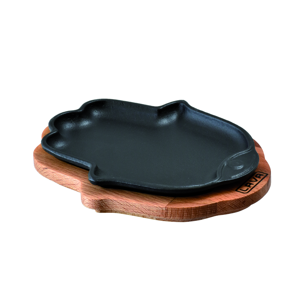 Сервировочное блюдо рука на деревянном подносе 12x16cm.