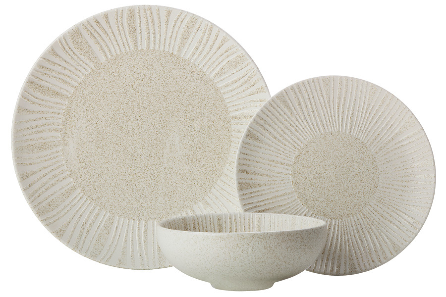 Сервиз обеденный, 4 перс, 12 пр, фарфор P, бежевый, в крапинку, Линии, Solaris