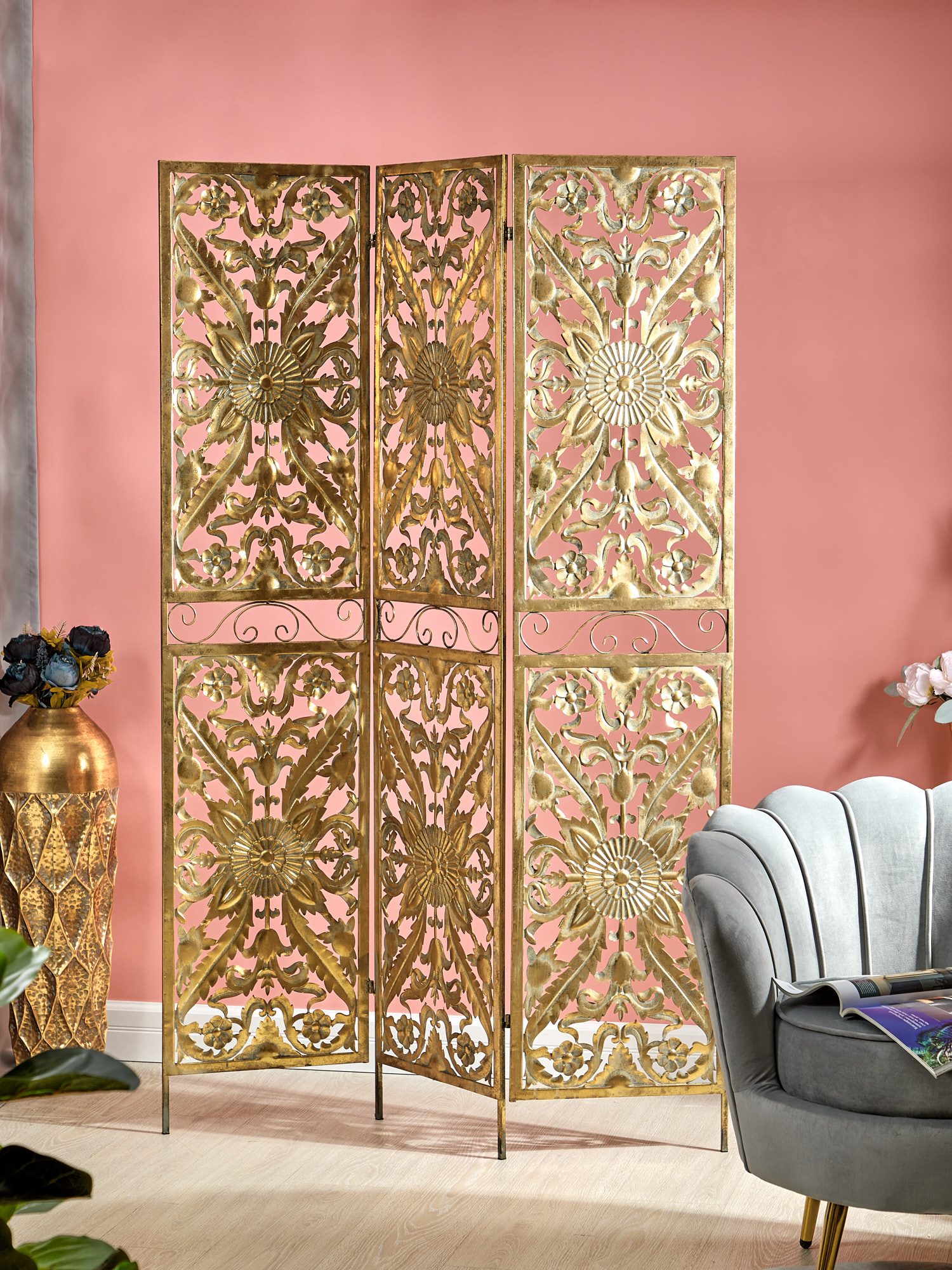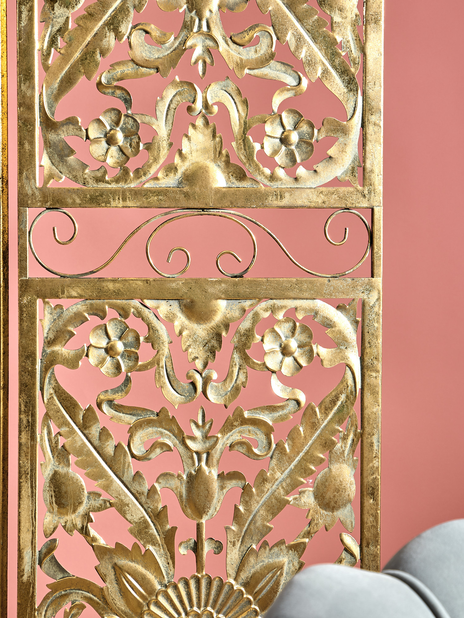 Неподражаемая ширма Эфиопия, выполненная из металла в африканском стиле и украшенная орнаментной резной фактурой. Изделие имеет признаки искусственного состаривания, поверхность декорирована с эффектом патинирования, а наличие сварочных швов подчеркивают принадлежность к ручной работе. Оригинальная форма ширмы подчеркнет ваш изысканный интерьер своей неповторимостью. Эксклюзивные формы и фактуры навеяло богатство культуры Африки, множество художественных традиций и таинственная атмосфера, окутывающая неподражаемостью.