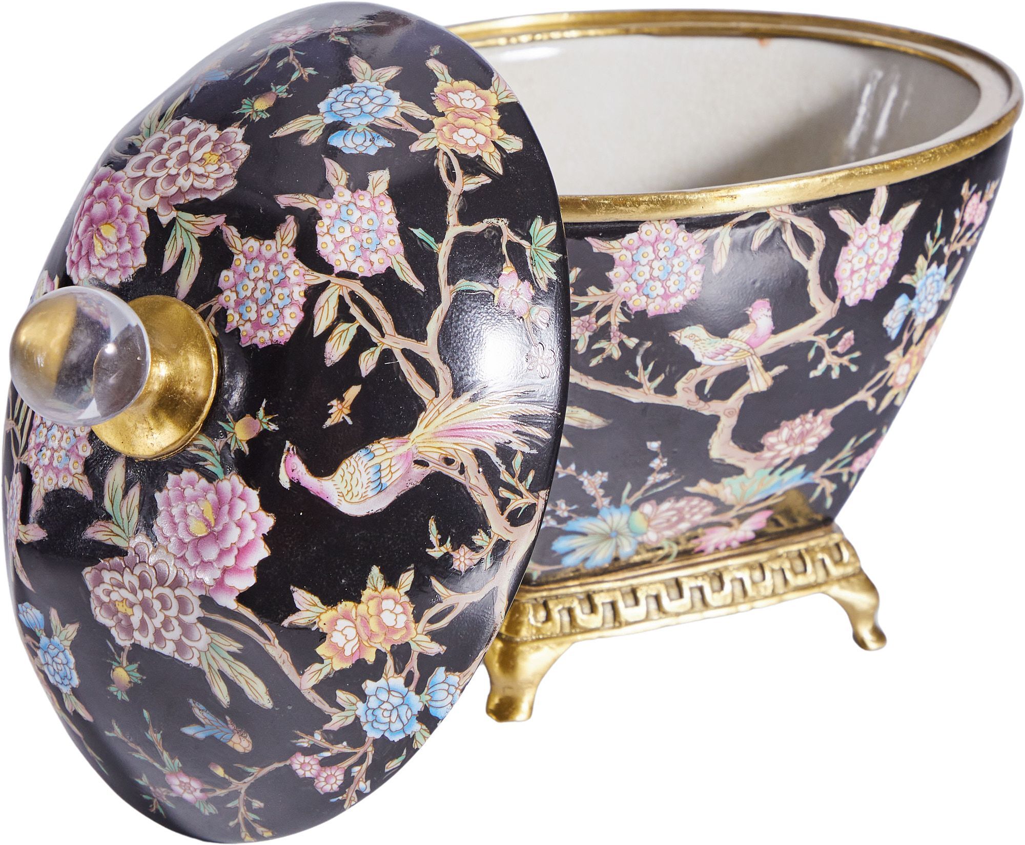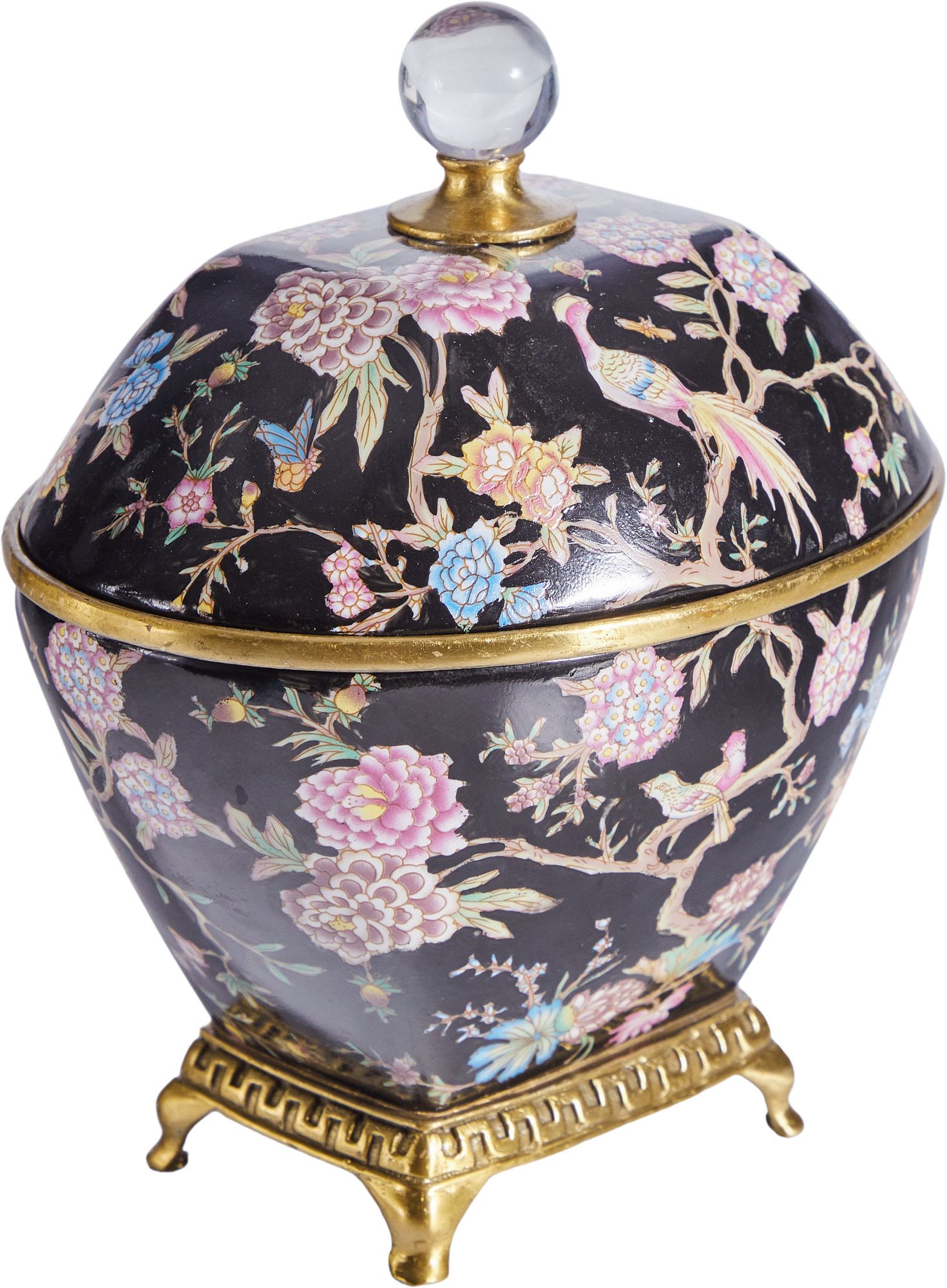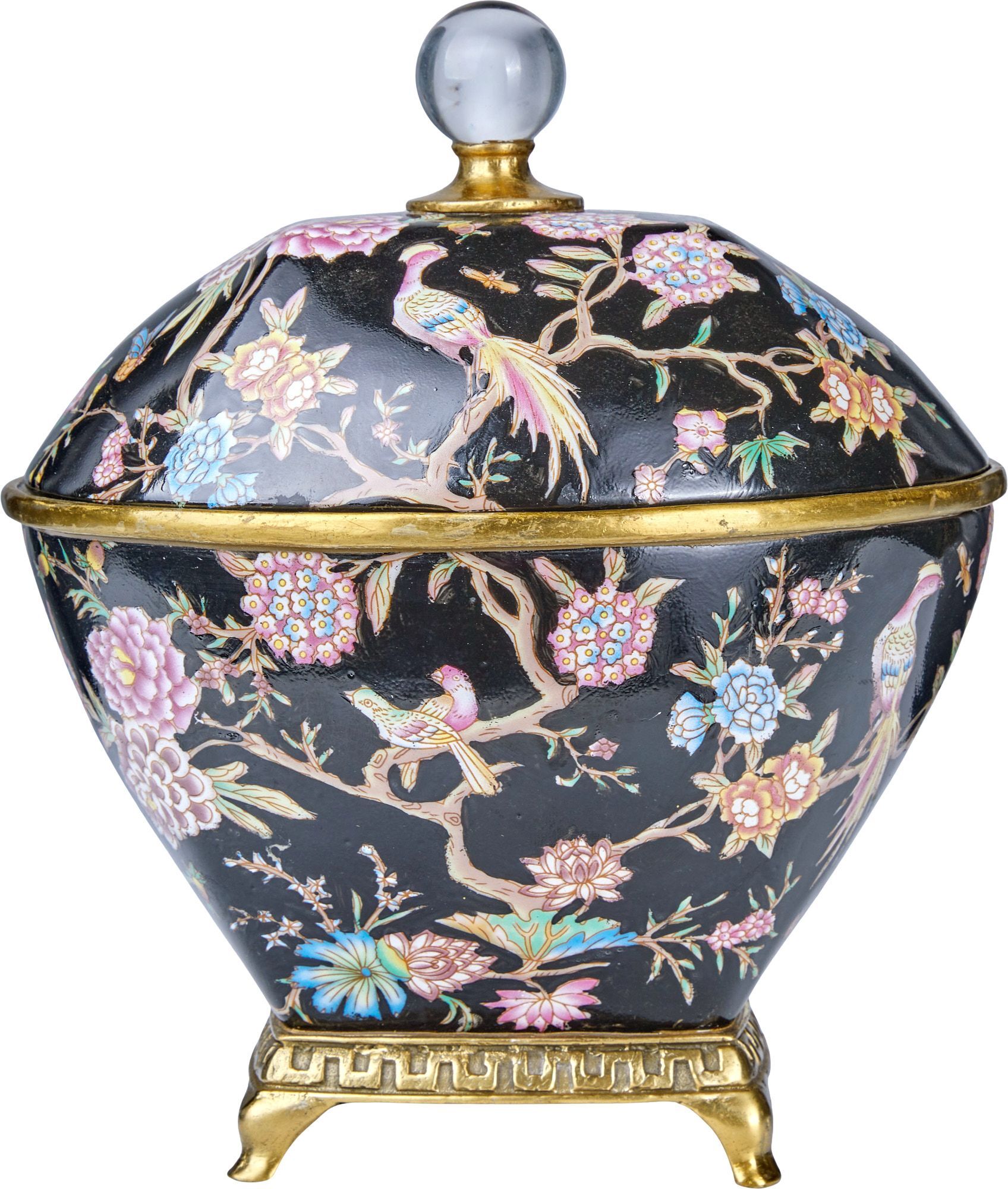 Великолепная шкатулка, выполненная из фарфора с бронзовыми элементами. Уникальное изделие ручной работы. При производстве этих художественных изделий из фарфора с бронзой используются вековые традиции китайских мастеров. Видимые трещинки (кракелюры) делаются по уникальной технологии, что придает более благородный вид старинного изделия.