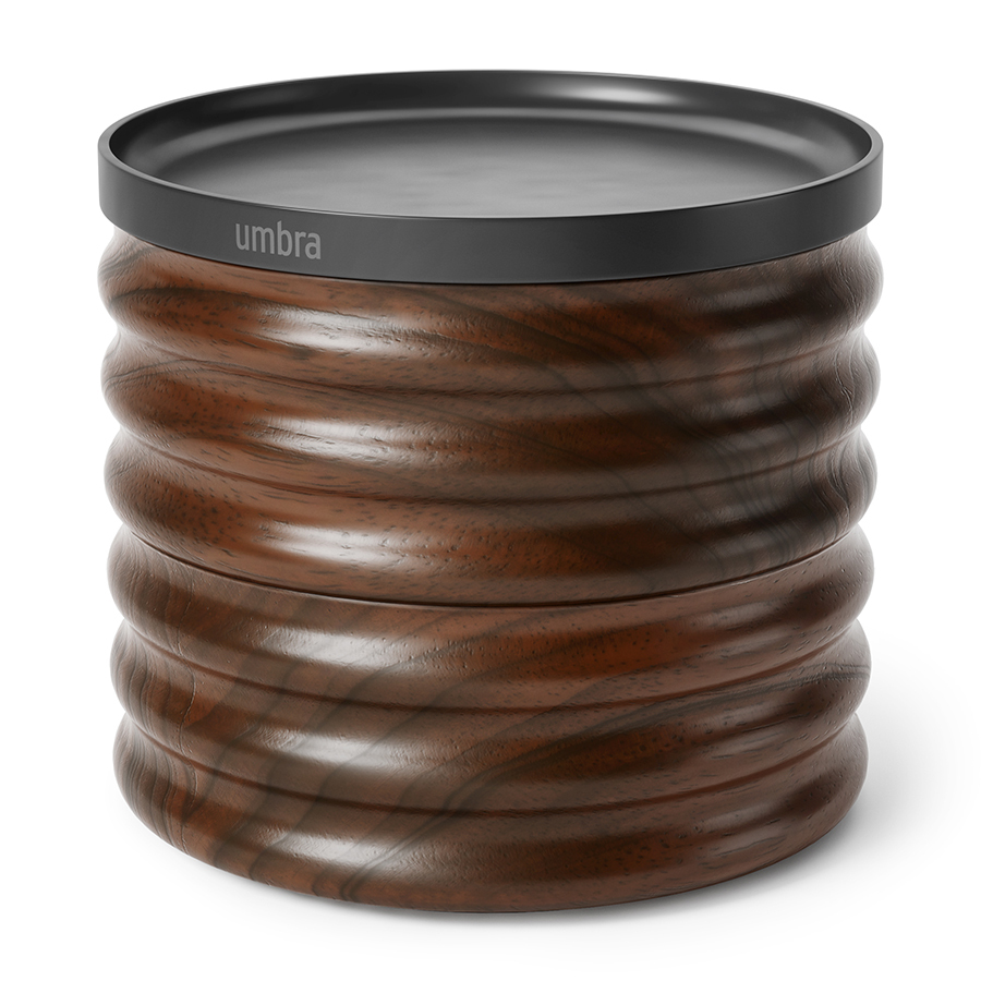 Материалы: каучуковое дерево, цинк. Размеры: 13х13х11 см. Цвет: темный орех/черный.