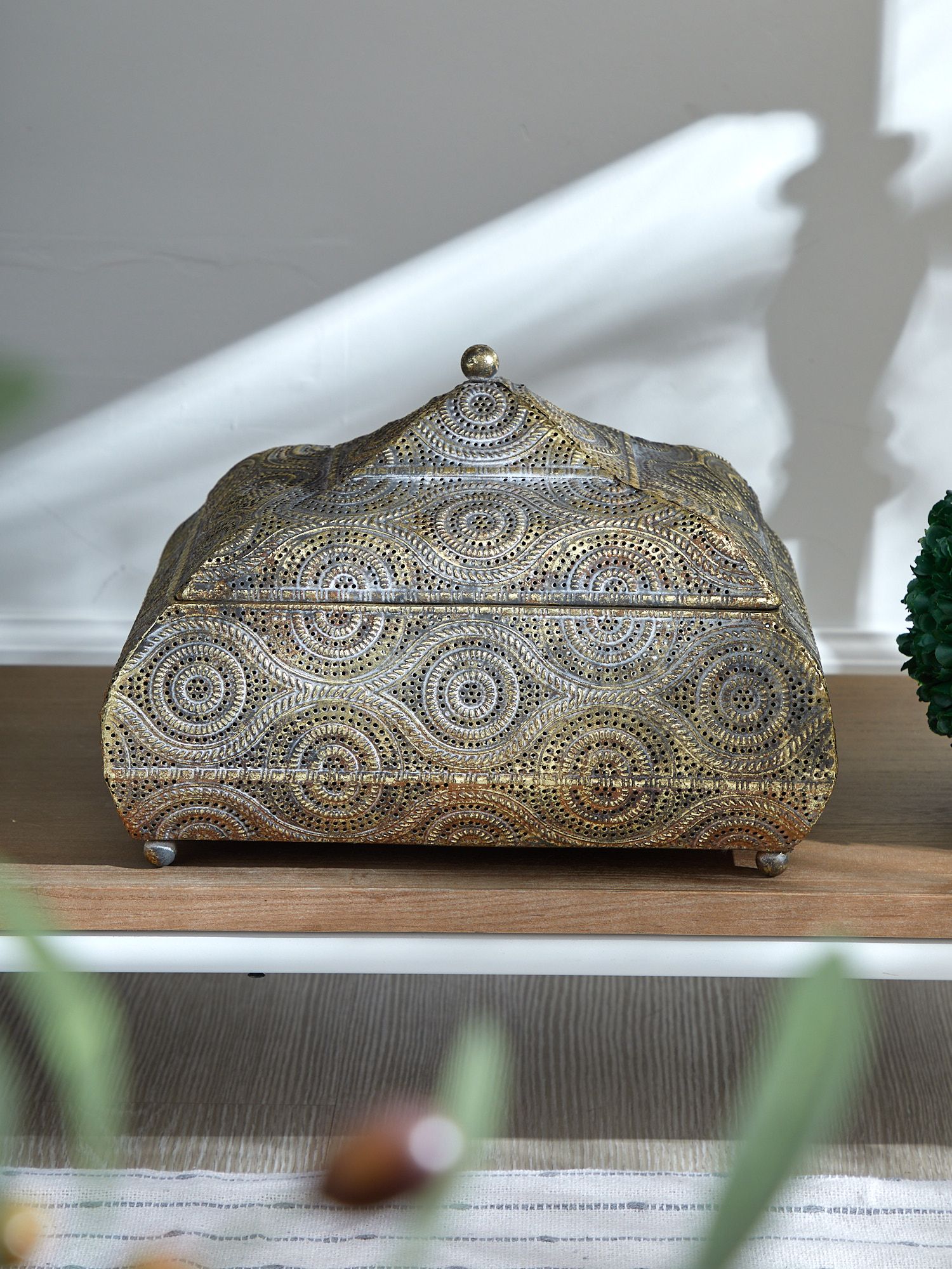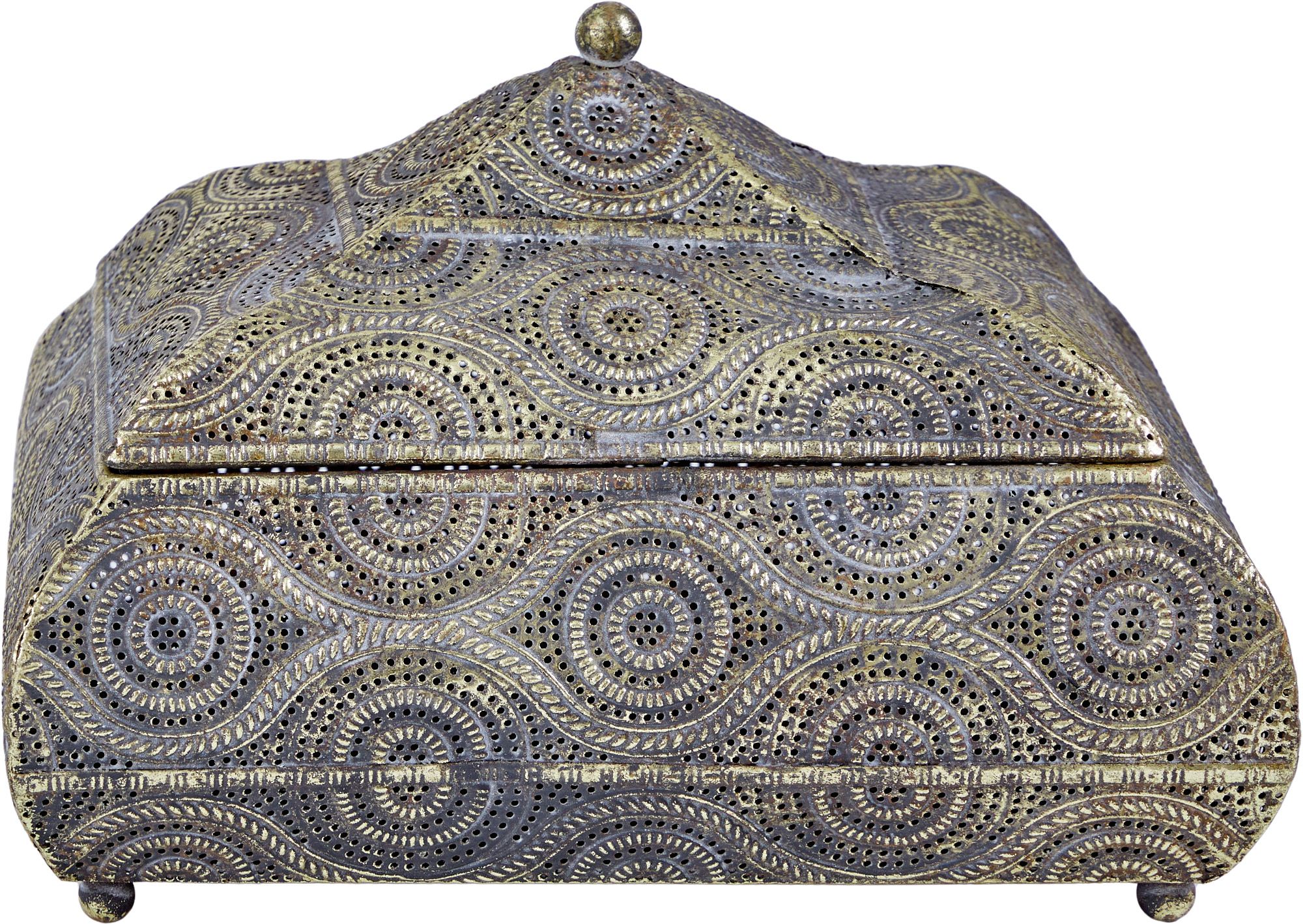 Шикарная шкатулка идеально впишется в любой интерьер и будет радовать глаз. Изделие имеет признаки искусственного состаривания, поверхность декорирована с эффектом патинирования, а наличие сварочных швов подчеркивают принадлежность к ручной работе. Теперь хранить разные вещицы можно будет не только с удобством, но и с изяществом. Эксклюзивные формы и фактуры навеяло богатство культуры Африки, множество художественных традиций и таинственная атмосфера, окутывающая неподражаемостью.