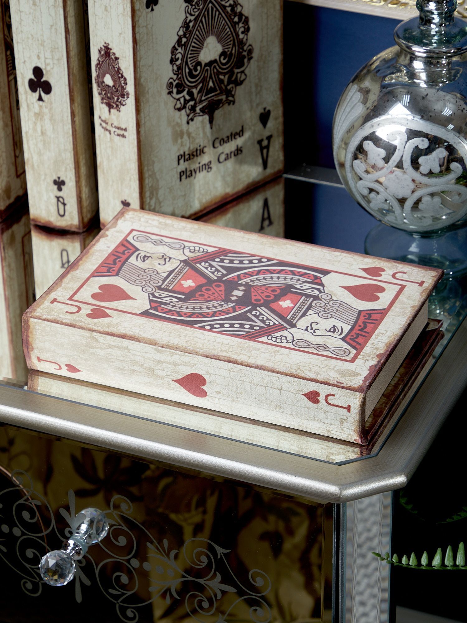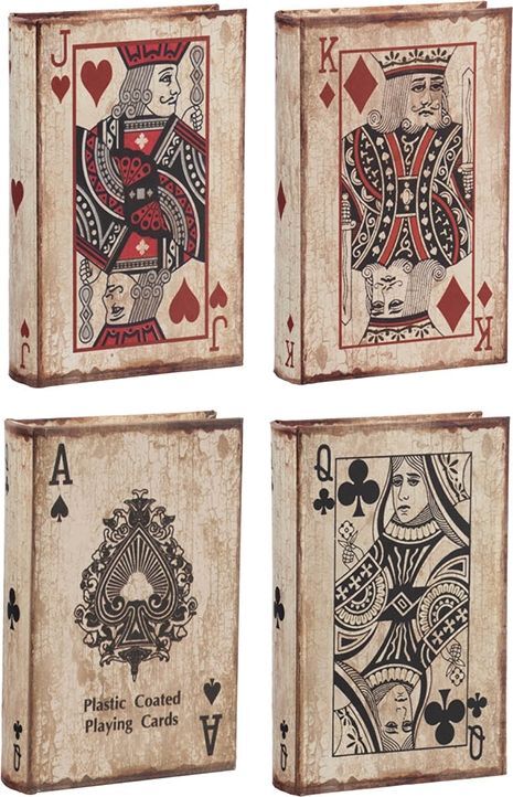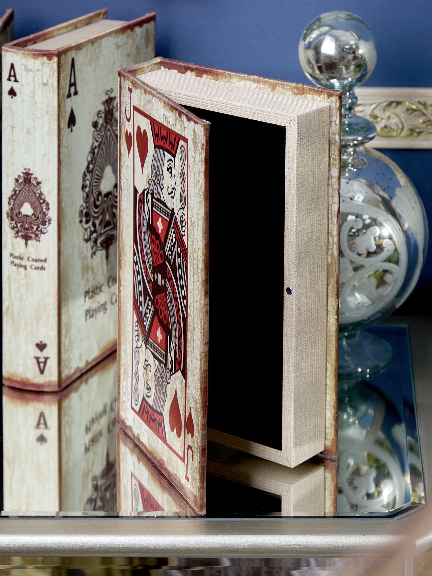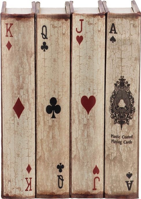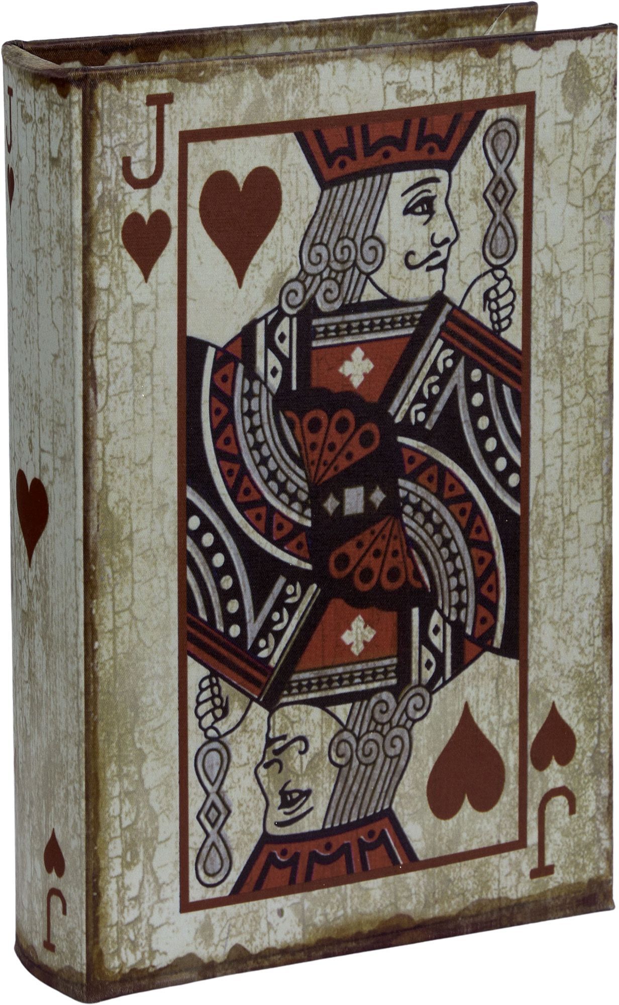 Изысканная шкатулка в виде книги, выполненная с эффектом под старину и изображением игральной карты, предназначена для хранения любимых предметов. Украсит книжную или каминную полку, любой дом или офис.