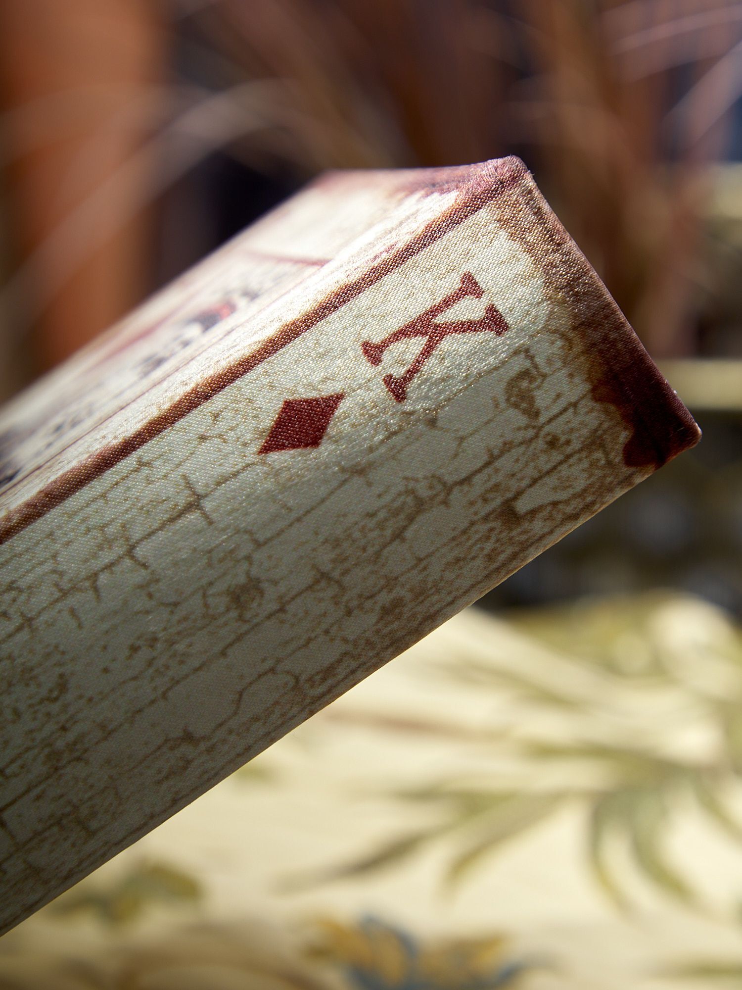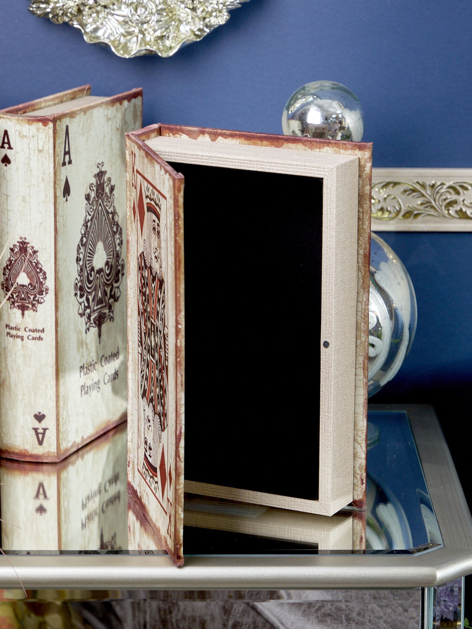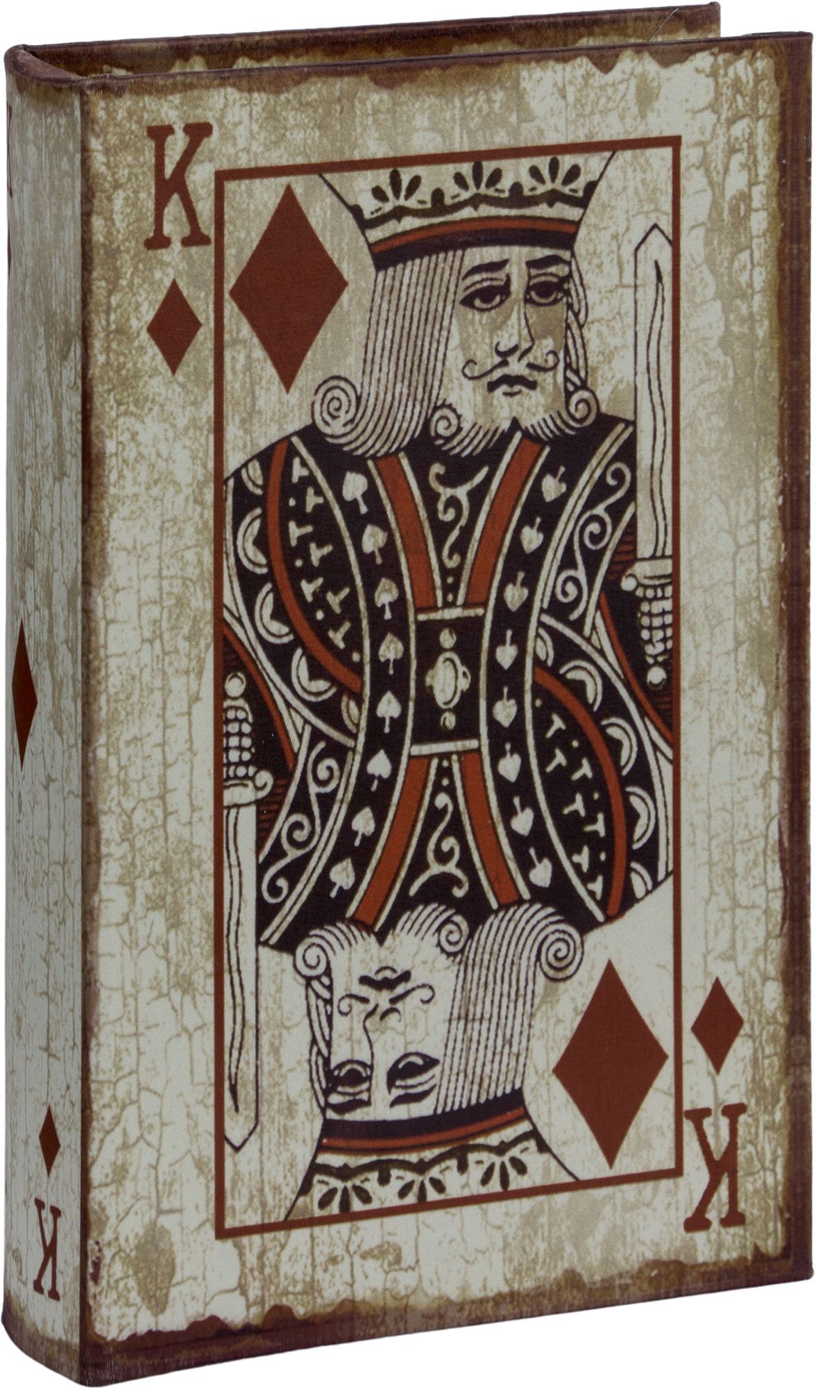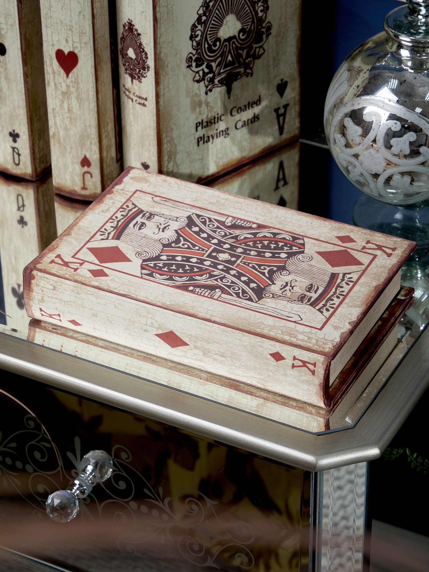 Изысканная шкатулка в виде книги, выполненная с эффектом под старину и изображением игральной карты, предназначена для хранения любимых предметов. Украсит книжную или каминную полку, любой дом или офис.