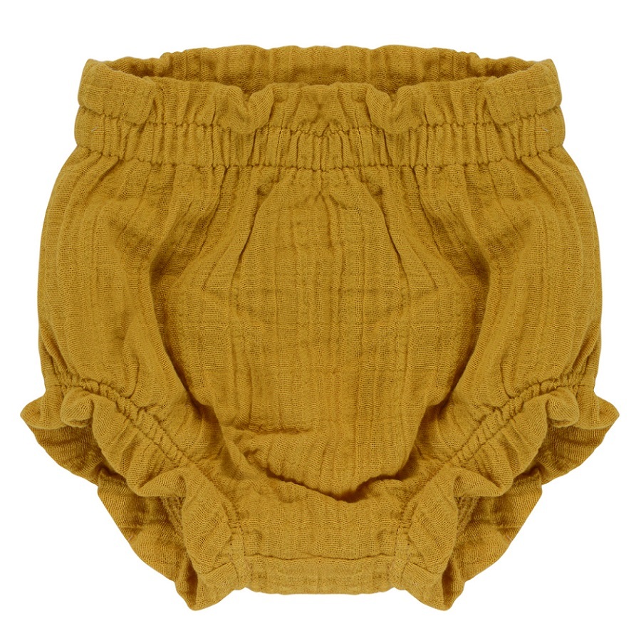 "Шорты для новорожденных из хлопкового муслина горчичного цвета из коллекции Essential лаконичного дизайна и базовой расцветки легко сочетать с другой одеждой. Они подойдут и мальчикам, и девочкам. Широкая мягкая резинка на талии и тонкие резинки на ножках обеспечивают хорошую посадку и формируют красивые сборки.