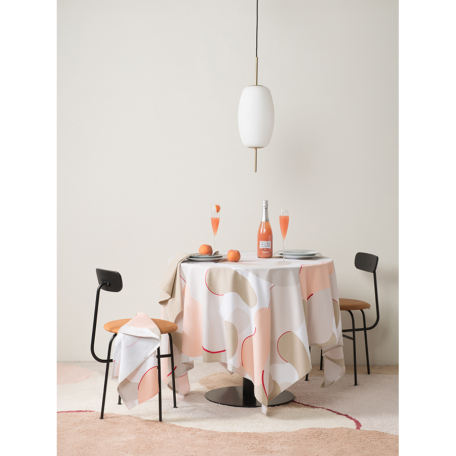 "Скатерть из хлопка бежевого цвета с авторским принтом из коллекции Freak Fruit станет центральным элементом сервировки стола. Абстрактный принт не имеет повторяющегося раппорта и представляет собой единую законченную картину.
