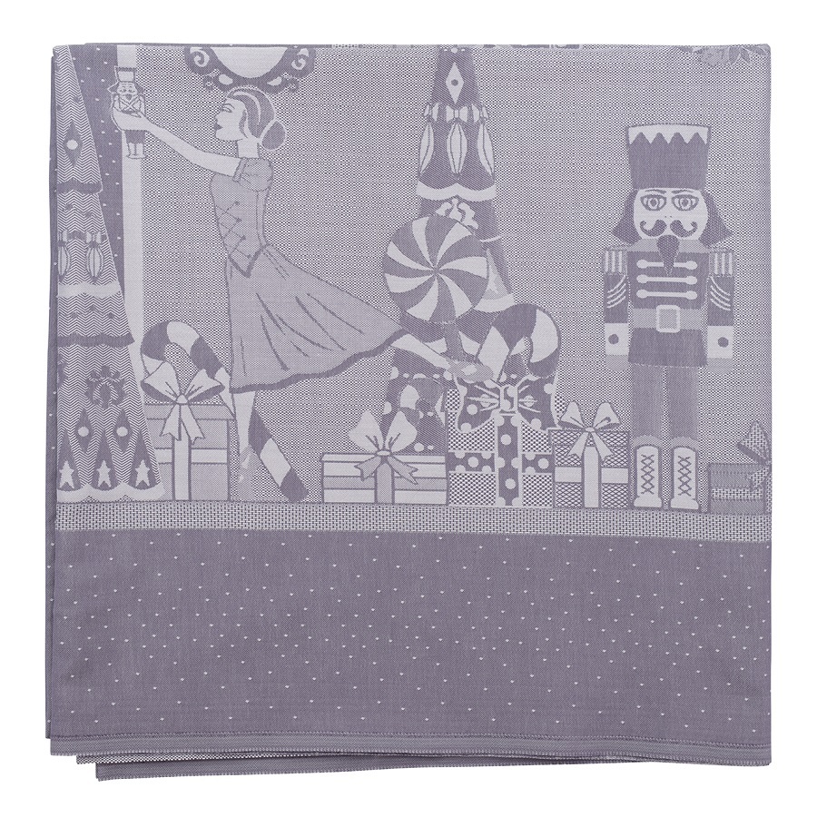 "Скатерть из хлопка насыщенного фиолетово-серого цвета с жаккардовым , ,рисунком Щелкунчик из коллекции New Year Essential украсит праздничный новогодний стол и внесет разнообразие в повседневную зимнюю сервировку. Новогодняя сказка, любимая всеми с детства, стилизованная в оригинальном дизайне скатерти, органично впишется в любой современный интерьер. Модель выполнена из плотного хлопка - прочного материала, который хорошо впитывает влагу и не деформируется после множества стирок.