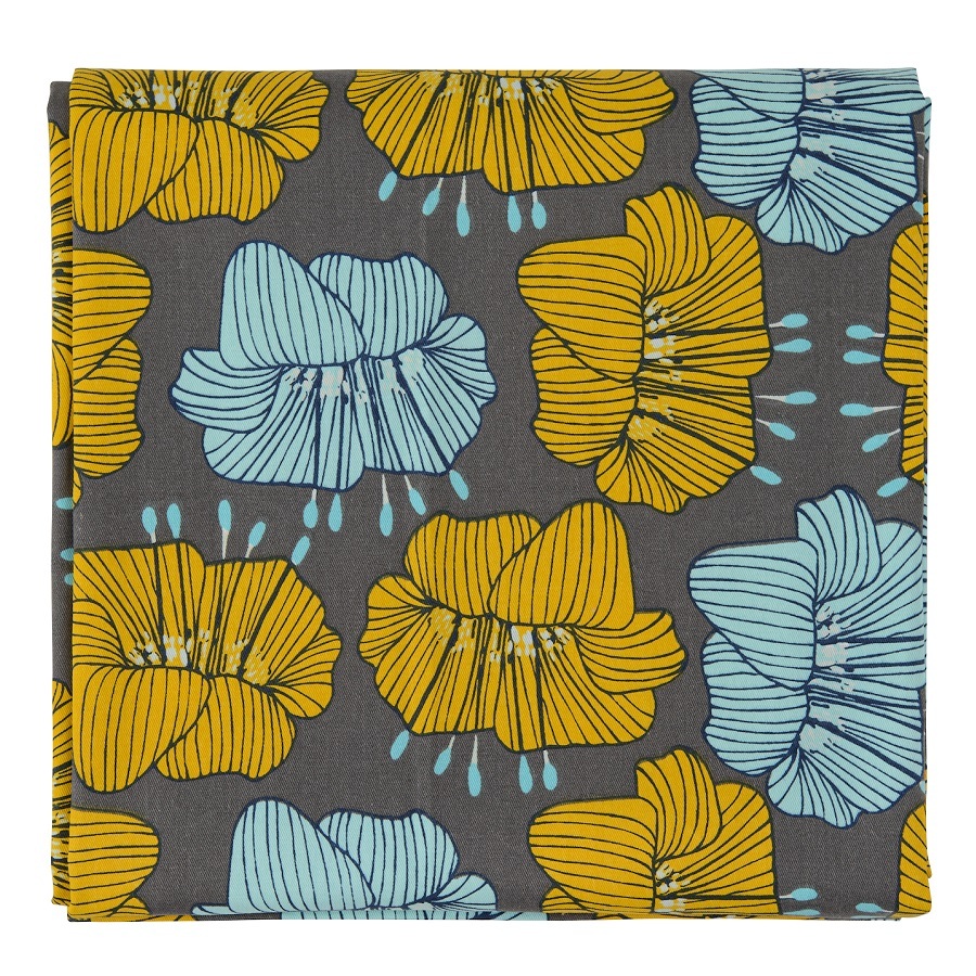 "Скатерть из хлопка серого цвета с принтом Цветы из коллекции Prairie станет центральным элементом сервировки стола. Модель выполнена из прочного, экологически чистого хлопка. Дизайн с крупными цветами ярким акцентом гармонично впишется в любой современный стиль. Износостойкий материал хорошо впитывает влагу и не деформируется даже после множества стирок. Тип плетения: твил. Плотность ткани - 215GSM.